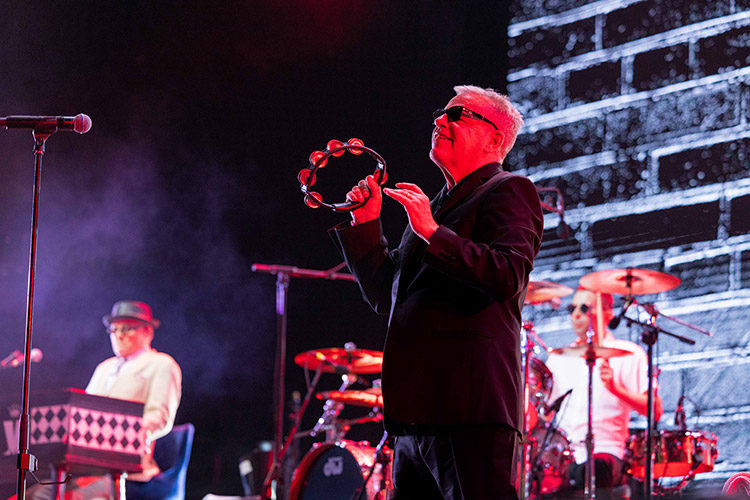 Antes de dar paso a la rampa de despegue del último tramo sonaron algunas canciones de sus discos más recientes –notables en lo musical pero de escaso impacto entre el público–, como “NW5”, “Lovestruck” o “Mr Apples”, así como la versión de Jimmy Cliff “The Harder They Come”, con cadencia reggae e imágenes de la película homónima en la pantalla de alta resolución de detrás del escenario. A partir de aquí, se pusieron el modo “deja de pensar tanto, maldito cuarentón, y ponte a bailar”, con el saxofón de Lee Thompson dirigiendo el cotarro. Como rayos en una tormenta descargaron del tirón “House of Fun”, “Baggy Trousers”, “Our House” e “It Must Be Love”, un canto al amor que incluso ablanda el corazón de los chicos rudos.