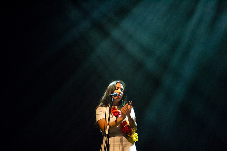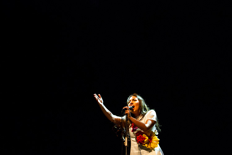 María José Llergo planteó de forma astuta, en sentido ascendente, las pruebas autoimpuestas. Acomodó la voz –‘in-ear’ arriba, ‘in-ear’ abajo– en cinco temas compartidos con la soltura de Marc López a la guitarra que ya hicieron saltar los primeros “oles”; hubo granaínas y boleros, “Niñas de la dunas”, y también un nuevo corte inédito en directo, una apología “a las cosas simples”. Y para cuando Lost Twin andaba sobre el escenario para lanzar las bases, su cante ya era pegamento entre lo orgánico del nylon y los mundos profundos de los sintetizadores.
