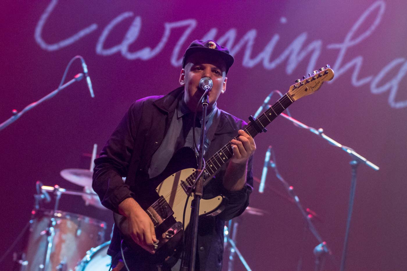 La simpatía promiscua del trío gallego Novedades Carminha nos alegra el cuerpo y el alma. Abren con una comedida “Fiesta Tropical”, pero no tardan en calentarse y calentarnos con su pop garajero y socarrón. “Quiero Verte Bailar” deja claro cuál es el objetivo de su segunda visita al MAZ. “¿Estáis ahí o qué? ¡No se os oye un carallo!”, nos azuza el cantante y guitarra Carlos Pereiro AKA Carlangas. Solo hay que ver lo guapos que están, con ánimo de ofender y movilizar nuestras carnes adormecidas. ¿Quién dijo que estos chicos eran frívolos y superficiales? Digna de elogio es la solidaridad que muestran en “Juventud Infinita”: “O follamos todos, o me tiro al río”, exhorta Carlangas, con voz canalla. Su “Antigua pero moderna” describe el perfil del público que se congrega en el Social Antzokia esta noche. Desde jóvenes infinitos en su modernidad -pelín arty-farty, quizá-, a “antiguos” cuya cara de despiste parece indicar que se pensaban habían comprado una entrada para el cine y se encuentran de pronto con este desfase universitario. Barbitas hipster e incluso un binóculo improvisado modelo Valle-Inclán. Todo cabe y todos somos bienvenidos.
