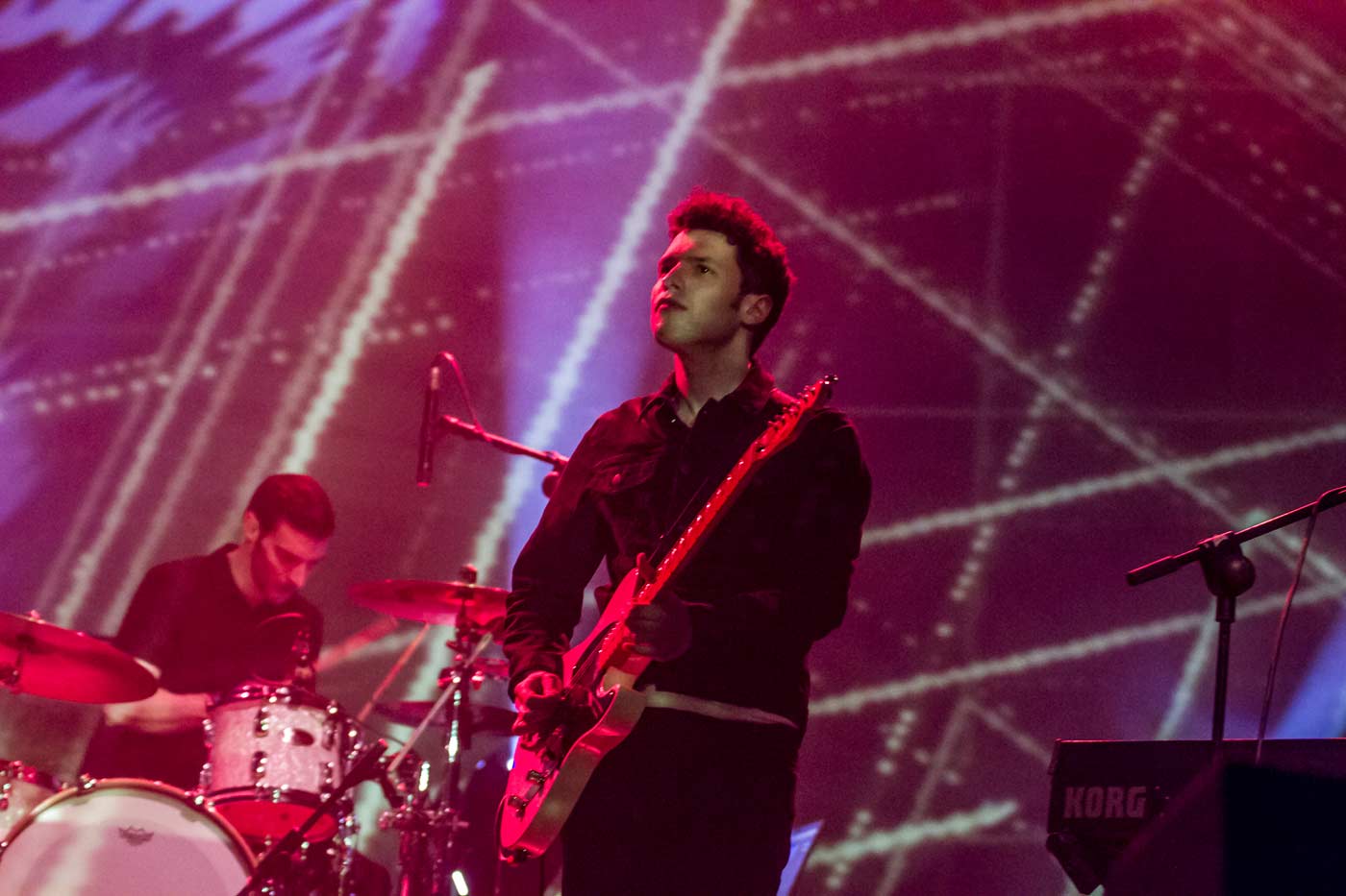 Unclose (foto inferior) abrieron esta tercera entrega del MAZ. Lo hicieron con un sonido que cabalgaba entre el underground más ecléctico y el british pop más bailable. Todo un espectáculo electrónico disfrazado con varias máscaras, para todos los gustos. Con puntualidad extrema abrieron el espectáculo e hicieron un adelanto de temas que incluirán el su primer LP que verá la luz en septiembre de este año. La penumbra iluminaba acordes y sintetizadores en temas como "Horses" o "Runaways", incluidos en su EP de debut "Runaways". Sonido ecléctico, eléctrico, electrónico y bailable el que resulta de esta formidable formación. Con guiños al estilo Iggi Pop pasando por The Knife o David Bowie, este trío elevó la calidad del bolo tocando temas agitados con un estilo british delicioso y preparó al público para lo que vendría después.