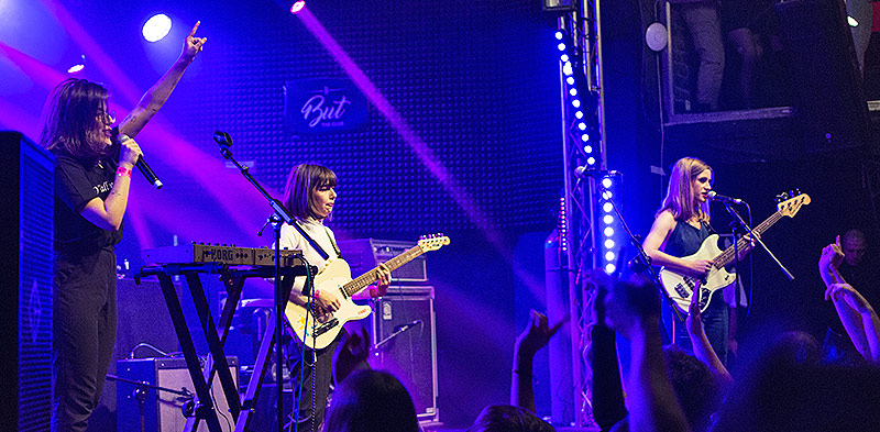 El público se apiñaba a las puertas de la Sala But y rodeaba la primera esquina y subía por toda la calle Larra formando una cola numerosísima que demostraba que el sold out de las Cariño en Madrid no era solo una cuestión numérica sino espiritual. El mood imperante entre los asistentes era el que con tanto éxito transmiten Alicia, María y Paola en todas las canciones que han lanzado desde que hace menos de dos años viera la luz "Pop para la bajona": alegría, ritmos optimistas y letras irónicas y con sentimiento. Consiguen conectar indudablemente desde las primeras notas de Mierda seca, la canción con la que abren este concierto que terminó siendo evidente que era algo más. Si hace un año servidor pensaba que las Cariño eran lo mejor que le había pasado a la música española desde Yung Beef, y aunque considerándolo en frío puede resultar exagerado, la totalidad de canciones de su disco "Movidas" es una prueba clara de lo complicado que puede resultar hacer música buena y agradable y que eso parezca sencillo. Por cada veinte grupos independientes intentando sonar atractivos solo uno lo consigue y, en este caso, son ellas.