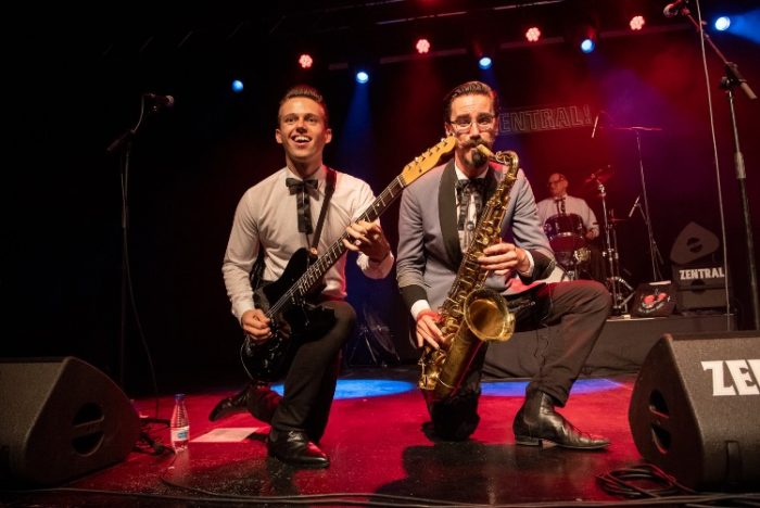 En formación de cuatro y engominados para la ocasión, iniciaron su actuación con uno de sus nuevos temas, "Always, always, always", y esa repetición de palabras y patrones que tan bien funciona en sus intenciones de hacer bailar al respetable desde el primer minuto. Tras esta, sonó “KFC Called The Cops On me”, con el pollo frito siempre rodeando la temática de muchas de sus composiciones, y “Goin’ Chicken Crazy”, donde el saxo da el pistoletazo de salida a una melodía marca de la casa. Todas ellas, unidas a “Hooch party” con su dinámica repetitiva y hedonista, marcaron el inicio de un directo frenético y con disparos breves al más puro estilo Sonics, The Excitements o The Wailers.