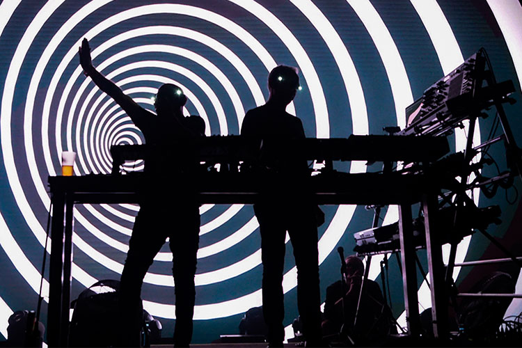 Luego, llegó el momento de Michael Rother, que vino a tocar temas de NEU!, la banda que le propulsó hasta uno de los puestos de honor de la historia de la música del siglo pasado, por su aportación en la configuración de lo que conocemos como krautrock. Rother vino a conmemorar el 50 aniversario de la publicación del disco de debut de la banda germana y vino escudado por dos figuras también primordiales de aquella escena, por un lado, Hans Lampe a la batería, miembro de La Düsseldorf, y Franz Bargmann, miembro de los míticos Camera, a la guitarra. Pero la fiesta no fue todo lo placentera que uno hubiera deseado. El volumen de sonido se quedó tan corto como el de una fiesta de cumpleaños con los padres en casa. De hecho, esta fue una de los pocos reproches que se podría hacer a la organización: el sonido acolchado de algunos de los conciertos. El otro reproche iría, sin duda, dirigido al concierto de Orbital. Fue, sin duda, una de las grandes decepciones de la temporada. Ni su puesta en escena – caricatura de ellos mismos, pero con un set para bodas y bautizos-, ni su sonido – de pólvora mojada-, ni su selección de temas remitieron a la grandeza de este dúo de Kent, que un día hicieron que el techno europeo se pusiera la misma altura que el que se facturaba en el otro lado del Atlántico. Suerte que esa noche, antes de este descalabro, pudimos disfrutar del directo de Alva Noto, con un espectáculo más enfocado a la pista de baile de lo que nos tiene acostumbrados focalizado en su último disco “UNIEQAV”. Soft Crash fueron la gran revelación de la noche gracias a una suerte de italo disco combinado con EBM. El combo sustentado por Phase Fatale (actual DJ residente del mítico club de Berlín Berghain) y Pablo Bozzi hizo bailar a base de bien, al grueso de decepcionados que venían rebotados del directo de los padres de “Satan”.