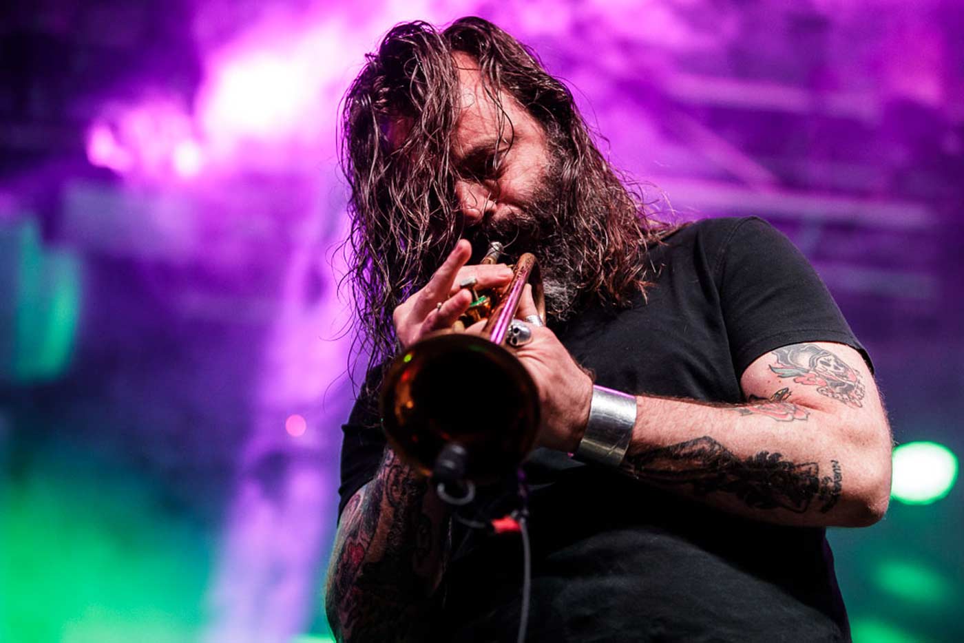 El grupo holandés ¡Pendejo! (foto inferior) ofrece una curiosísima propuesta de rock potente, un Stoner Rock de muchos quilates, combinada con la grave y casi gutural voz de El Pastuso y aliñada con instrumentos de viento (¡). Aunque la mejor definición viene de ellos mismos: “Rock with cojones the size of Danny de Vito”. El show, frenético y brutal, no es una propuesta: ellos vienen a tomar la plaza, y saben que lo harán. El Pastuso, un portento, es entre intimidante y divertido. Arenga y provoca al público, y más que cantar, vocifera y aplasta. Arrancaron con “Flotadores”, con fuerza y con la “sección” de viento a pleno rendimiento. De este modo, con el alucinante sonido de guitarra y la pegada y precisión del bataca, se sucedían los temas en una actuación sin descanso: “La vagancia”, “Juanita”, “Amor y pereza”, la tremenda “Arrecho vengo” y, ya para cerrar en lo más alto, la contundente “Camarón”. No falta acidez y mala ostia en sus letras, sobre todo en esa última, como tampoco en las composiciones. Mi voto es favorable: un grupo muy recomendable.