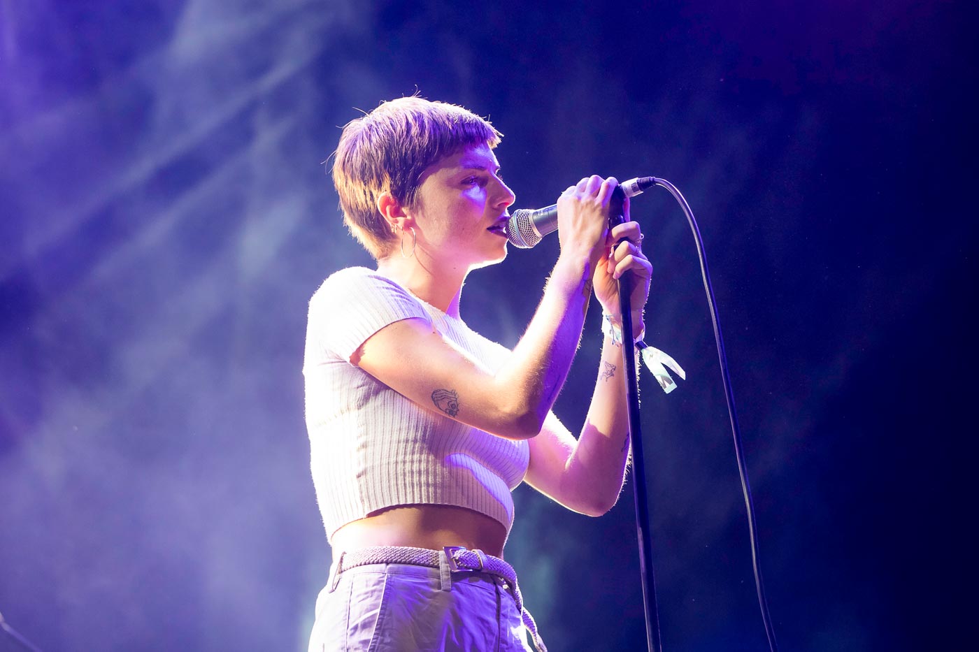 Belako abre con un auténtico hit del pasado reciente, “Haunted House”, aunque suena muy irregular… ¿Demasiada parafernalia distorsionadora al micro? La voz de Cris Lizarraga se sobra y se basta como para tener que recurrir a ese exceso de efectos. Desprovistos del teclado, suenan más ruidistas y descarnados, pero no por ello mejor que en otras ocasiones. Ejecutan tema tras tema sin titubeos, con actitud irreverente –agresivos a los instrumentos, no paran de reírse entre ellos y de hacer guiños a los suyos-. Alternan bellas canciones como la aligerada “Something To Adore” o “Maskenfreiheit” con trallazos punk (“Hegodun Baleak”, “Zaldi Baltza”). Buen diálogo guitarra vs. bajo en la incisiva “Render Me Numb”. Tanta furia desatada, a Lore Billelabeitia se le rompe una cuerda, y su hermano Josu le echa un cable. “¡Está maldito esto! Gusture, gusture! (a gusto)”, le quita hierro al asunto. Dejan para los bises “Over The Edge”, un canto “contra las agresiones sexistas”.