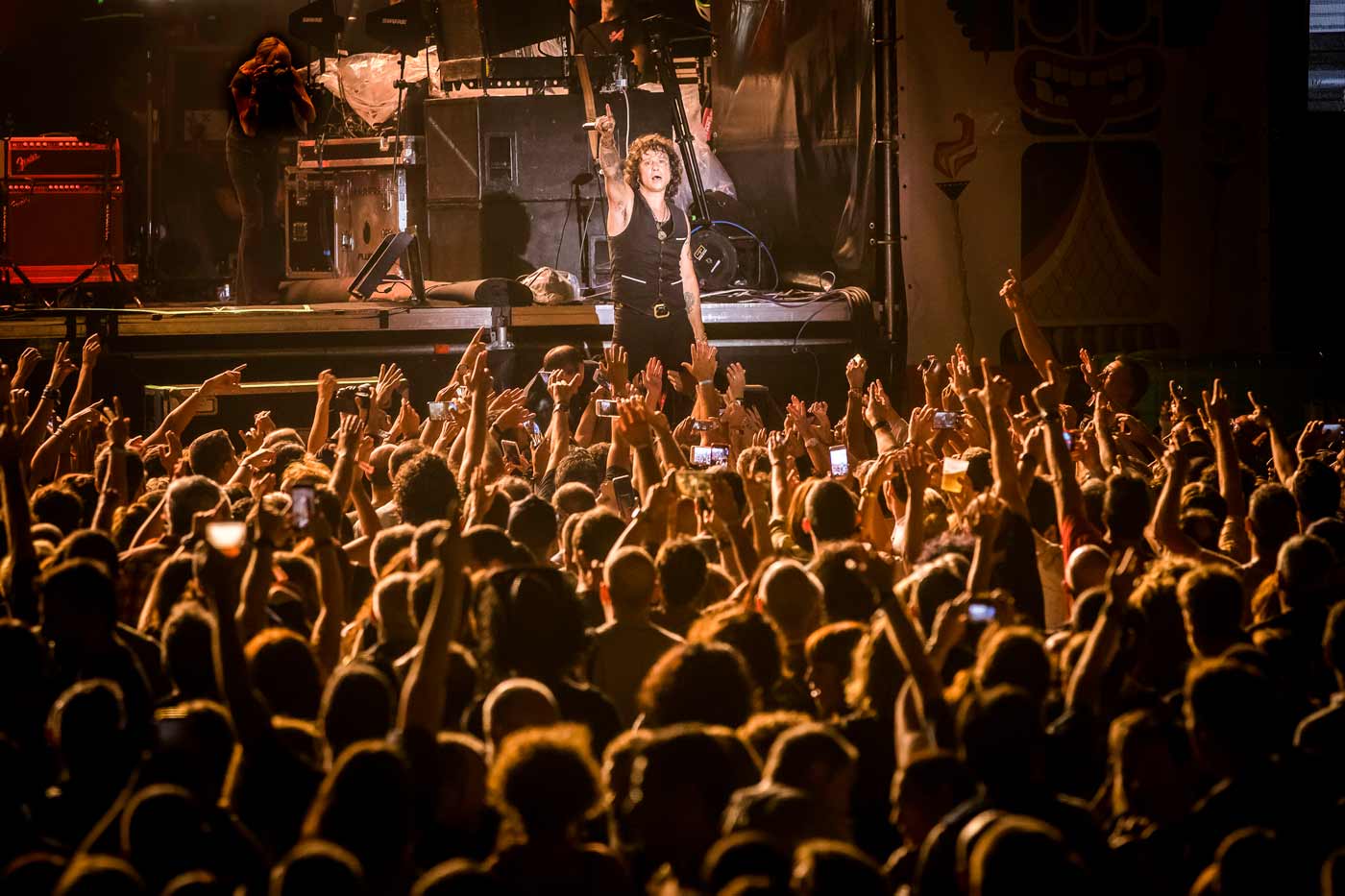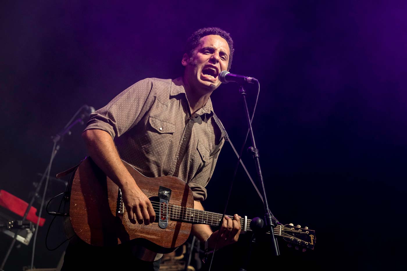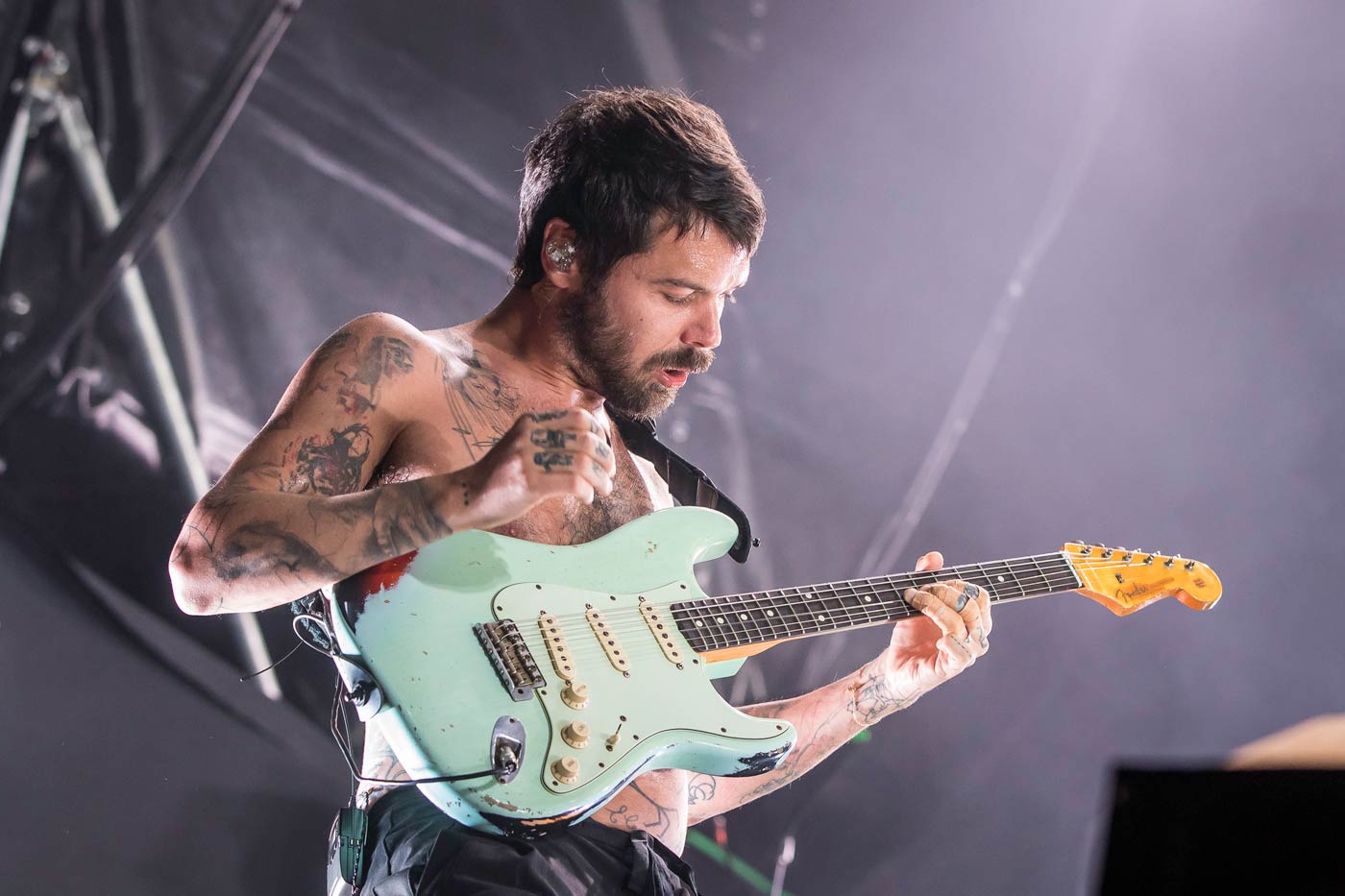 Anochece y toca ponerse en modo funky. Los creadores de problemas Vintage Trouble nos invitan a saltar y a que su receta de soul y R&B nos corroa las venas. Su cantante, Ty Taylor, alienta al público a dar palmas, corear e incluso a hacer la ola desde el minuto 1 (“Run Baby Run”). A lo mejor no hay que pedir tanto nada más empezar… Cuesta seguirle el ritmo a esta peonza eléctrica, que sólo detiene su flow para hacer las veces de predicador saleroso. “Lo mejor de estar en un festival en el que llueve es que nos vamos a poner húmedos juntos”, comenta socarrón. Realiza equilibrismos imposibles con el pie de micro, a lo pole dance. Aunque para ejercicio de equilibrismo y autocontrol, el de los baños ubicados en plano aberrante. Soul pasado en ocasiones por un inquietante filtro 80’s, Taylor exhibe una coreografía muy ensayada, mirando a cámara. Piruetas y verborrea a tutiplén. A ratos casi parece una clase de aerobic y/o de zumba, incluso se arranca con un “¡Sígueme! ¡Sígueme!”. En “Nobody Told Me” se viene tan arriba que se lanza a la lluvia y se da un baño hasta el pórtico de la ermita de Santa Katalina. Regresa al ruedo haciendo surf (boca abajo) sobre el público. Agotador.