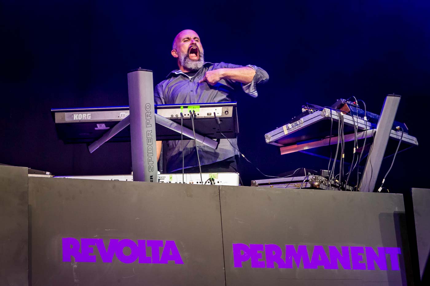 Revolta Permanent cierra la jornada con una diatriba hueca y descontrolada. Con un sonido extremadamente alto y saturado, se muestran combativos e inquietos, no paran de agitarse de un lado a otro del escenario, boxeo metal y demencial. Los revoltosos de Barakaldo presentan su más reciente álbum, "Ultravioleta", pero tampoco faltan bofetadas sonoras anteriores como “Sustraiak”. A Aitor Abio poco le falta para derribar sus mesas y demás mobiliario urbano. “¡Somos Los Panchos!”, se despide el veterano teclista mungiarra. Esperamos que tras esta descarga de rabia mañana escampe…