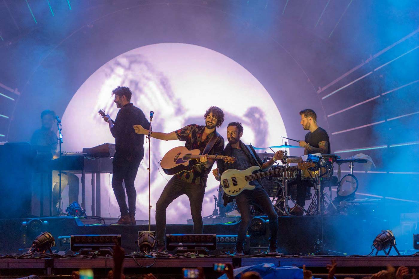 Y es que sin apenas habernos dado cuenta ya llegaba la hora, en el escenario Ambar, “Autoterapia” empezaba a hacerse oír y los madrileños Izal (foto inferior y encabezado) brotaban de un espacio de luces mientras que las miles de almas que allí se concentraban gritaban sin miramientos. En esta cita tan especial de comienzos de gira vimos a un Mikel Izal en un estado de confort, dedicando varios temas a familiares y amigos que se encontraban entre el público. Así de familiar era el ambiente que, llegada la media noche, fue el turno de los espectadores, que, al unísono le dedicaron al frontman, el cumpleaños feliz. Aunque un poco desubicado, agradeciendo la devoción en varias ocasiones a “Iruña”, el quinteto, hizo del Navarra Sur Festival un encuentro musical excepcional, transportando a todos los allí presentes a una atmosfera propia con su espectacular despliegue de luces y su más que consolidado sonido en directo.