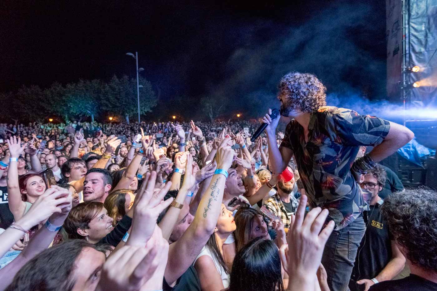 Acto seguido, el local El Mundo de Tulsa Dj, volvió a ponerse a los mandos del quiosco para asegurarse de que nadie dejara de bailar y mientras en el escenario principal, Rufus T. Firefly (foto superior) preparaba el show que coincidiría con el estreno de su nuevo trabajo “Loto”. Ellos mismos definen su nuevo trabajo como una segunda parte del anterior y aunque, según se dice, segundas partes nunca fueron buenas, bajo nuestra opinión los de Aranjuez se han cargado este dicho de una forma magistral. Meticulosas melodías de guitarras y teclados ensambladas en unas devastadoras bases de batería y bajo, generan los cimientos ideales para que la voz principal y los coros te atrapen en un ambiente lisérgico que te hace flotar durante toda la hora del espectáculo, en la que apostaron principalmente por los temas de su nueva referencia, pero sin renunciar a los míticos “Rio Wolf”, “Nebulosa Jade” o “Magnolia”. Así que después de las críticas cosechadas con su anterior álbum y lo que se nos viene encima con “Loto”, consideramos que esta banda no necesita sacarle parecidos ni coincidencias para identificarlos, simplemente se ha posicionado como un referente a nivel nacional, resultado de la línea que empezaron a definir hace 4 años con su trabajo “Nueve” y del crecimiento que han demostrado. No nos sorprende en absoluto ver su nombre en el cartel del festival Mad Cool de Madrid, entre otros muchos.