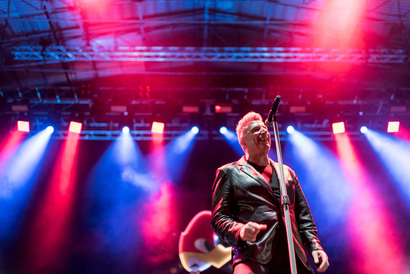 Como si de un medley se tratara, el final del concierto de Los Flamingos se enlazaba con uno de los platos fuertes del festival. El encargado de llenar los oídos de los asistentes en este momento era Ángel Stanich (foto inferior) que junto con su potente banda y sus sonidos más Western no tardó en hacerse notar con su “Mátame Camión” o su ya clásico “Carbura”. Con el recinto ya completando su aforo y con casi una hora de canciones en su espalda, el cántabro anunciaba el fin de su concierto no sin antes lanzar la bomba de “Metralleta Joe” sobre todos los presentes dejando en el recinto del festival un ambiente de trabajo bien hecho.