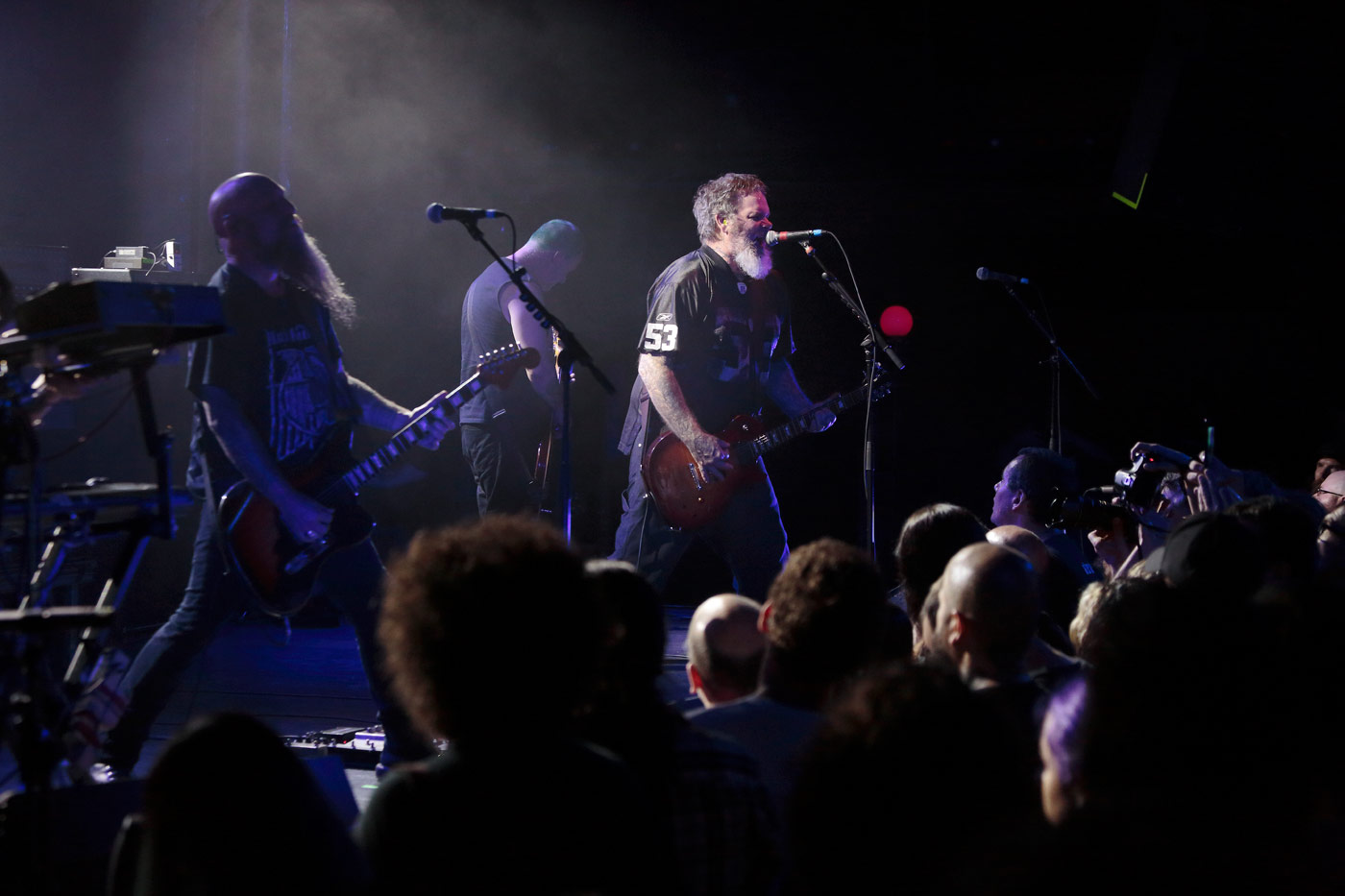 Abrió la noche otra banda de culto, YOB, para algunos –los menos– un tanto reiterativa; para otros, la verdadera protagonista de la velada. Algo comprensible a juzgar por el tour de force desplegado por el trío norteamericano, que inundó Apolo con sus digresiones de doom psicodélico. Mike Scheidt mostró tablas y su último “Our Raw Heart” aportó notas de color inéditas, algo que algunos seguidores aún no han digerido pero que, sin duda, abre interesantes posibilidades para una banda sin un mal disco. Siendo honestos, YOB son, a día de hoy, algo más innovadores respecto a su propia discografía que Neurosis, una de aquellas bandas que, por otra parte, ya no necesita demostrar nada a nadie. Nada nuevo, pues, bajo el sol; aunque el astro rey de Neurosis no tiene visos de apagarse.
