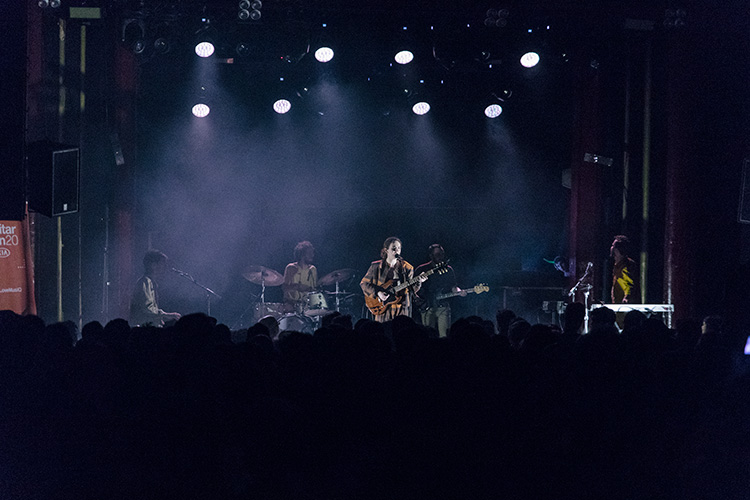 Lleno absoluto, un primer paso sobre el escenario y por fin el latido de “Connemara” dio el inicio perfecto a un concierto de esos de los que sabes que te vas a acordar. Un principio tan vaporoso y sentido como la propia canción, que en realidad es toda una despedida de los paisajes de una vida. La ansiosa crepitación de aplausos correspondía con ganas a la confianza con la que la catalana y sus cuatro músicos habían hecho acto de presencia. Después de la dulce “Hazel”, Núria respiró un momento y saludó por primera vez a su legión de ‘benparits’. Reconoció que lleva días insoportable, nerviosa y expectante por que llegara aquella noche, y arrancó a cantar de nuevo mientras dos haces de luz se cruzaban por su rostro, dejando el resto de la sala en tinieblas. Con ‘Do you wake up a little while everyday?’ todo volvió a resplandecer y los ánimos se elevaron a la enésima. Y es que es inevitable que las cabezas se agiten con esos versos ingrávidos y el bote épico, espectacular, del estribillo de este corte favoritísimo de lo nuevo de Núria Graham. Más tarde, aclaró a quien no lo supiera que el nombre del disco se debe al de su abuela, a la que nunca conoció. Graham comentó muy segura que este es el disco con el que se siente más identificada, y reconoció estar muy agradecida por vivir una noche que, como ya estábamos sintiendo, no se repite cada día. “Heat death”, con su estribillo álgido y melancólico nos meció hasta sus notas más altas, alcanzando unas cotas de perfección interpretativa que sobrecogían. Mientras daba otro sorbo, Núria bromeó con hacer cantar al personal como en los conciertos de estadio, e insistió una vez más en que se soltaba diciendo paridas porque estaba nerviosa. Pero en cuanto volvía a agarrarse al mástil y se aplicaba en sus versos, allí no quedaba rastro de nervios: casi nadie se atrevió a corear el juguetón estribillo sin letra de “Smile on the grass”, porque bastante teníamos con abrazarnos a nosotros mismos, cada centímetro de piel erizada.