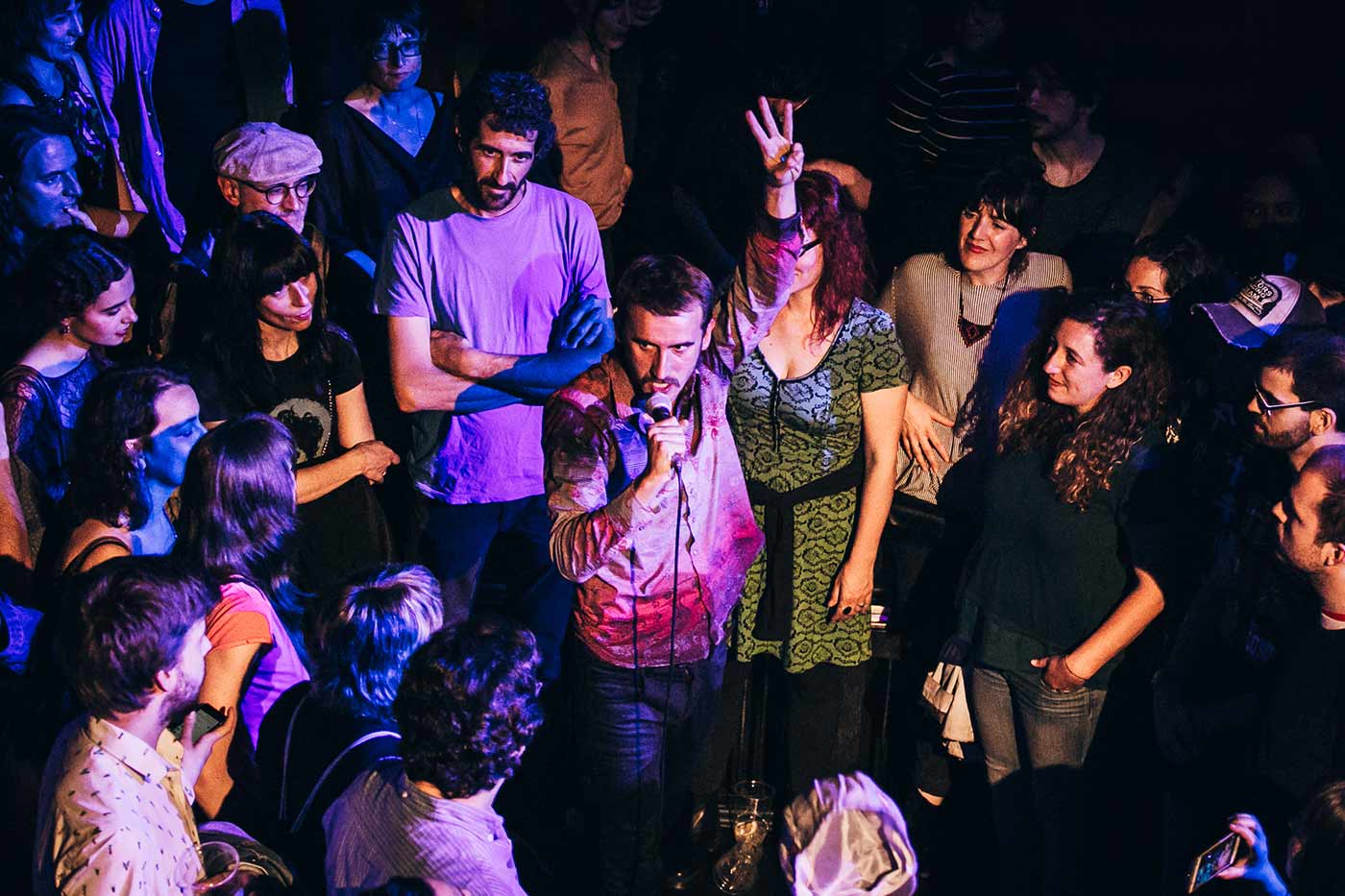 En estas estábamos cuando el plato fuerte de la noche hacía aparición en escena. Los que seguimos de cerca la carrera de Pablo Und Destruktion esperábamos con una mezcla de devoción y curiosidad malsana la presentación del recientísimo “Predación” (Sonido Muchacho, 17), que se publicó el pasado jueves y que le ha llevado, al fin, a protagonizar la portada de nuestra revista. Sobra decir que no defraudó. Pablo nunca haría algo así. La pasión y entrega con la que el asturiano se consagra a su arte hace que todas y cada una de sus apariciones sobre un escenario sean algo digno para el recuerdo.