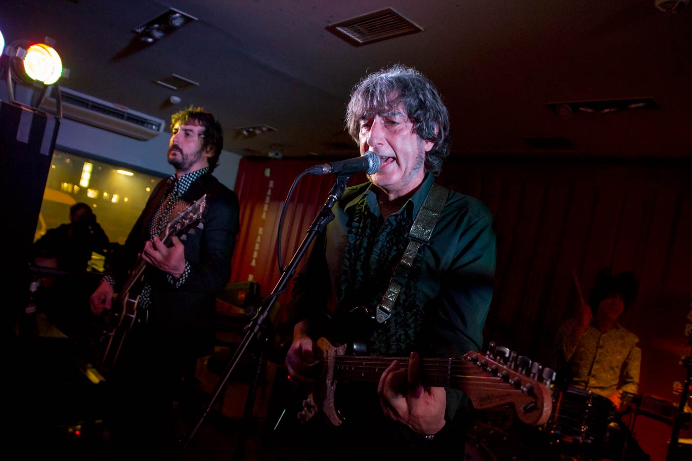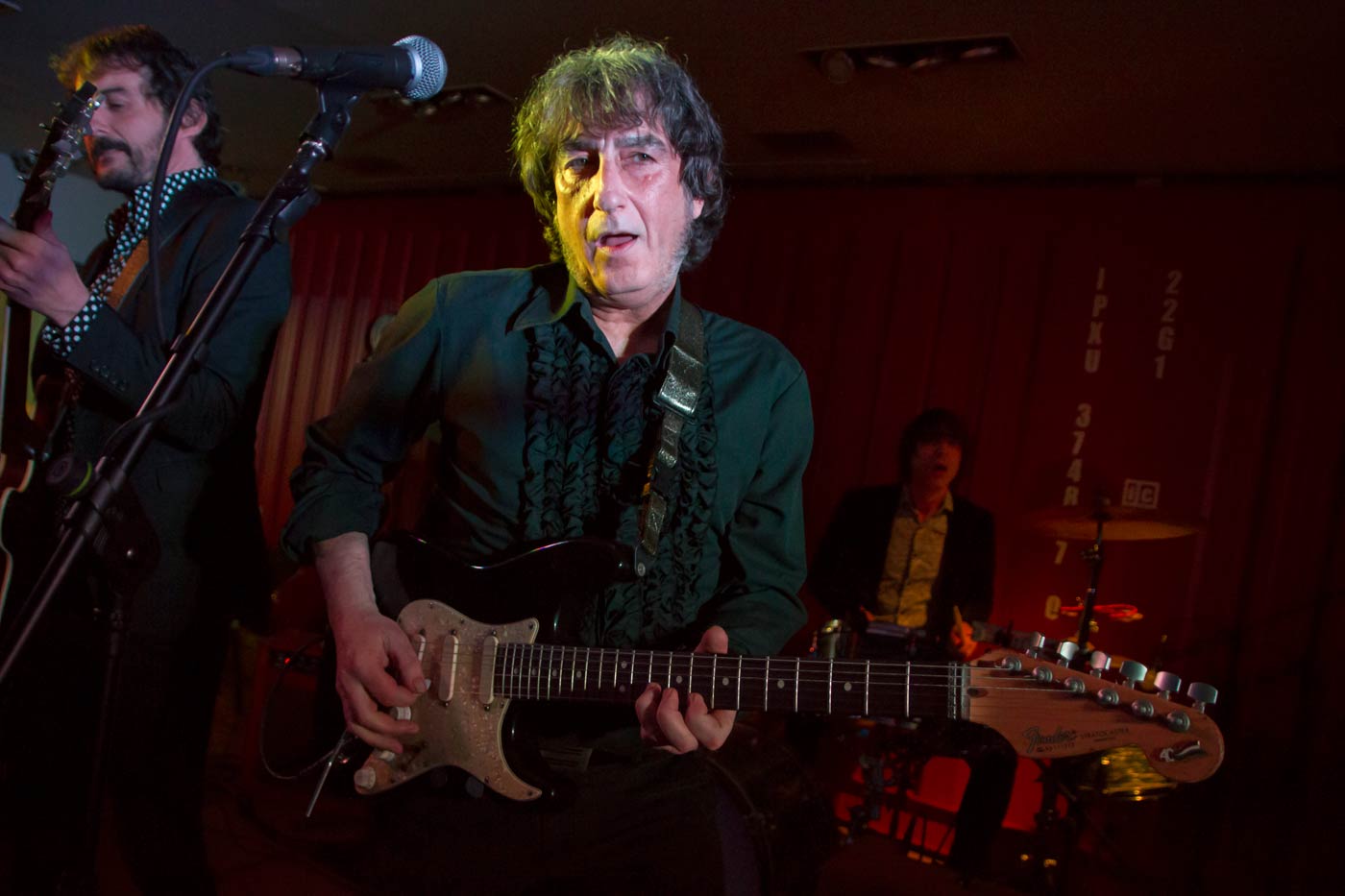 Remarcar a estas alturas la pericia instrumental que acaparan todos los implicados, especialmente visible en las seis cuerdas empuñadas por Andrés Herrera -no olvidemos su historia acompañando a Silvio, Kiko Veneno o Pata Negra- y su “compadre” Raúl Fernández, resulta tan reiterativo como necesario de nombrar al toparnos una vez más ante ella. Esa calidad se vio manifestada en un recorrido donde la electricidad fue el principal, aunque no único, ingrediente, algo que viene propiciado por la propia morfología de su actual álbum, probablemente el más compacto de los que han publicado hasta la fecha. Piezas pertenecientes a él fueron las que marcaron el arranque de la noche, con un trotón inicio, que ya anticipaba la trascendental presencia de la batería, envuelto en esas fotografías sonoras marcas de la casa entre el western y el surf (“Corre chacal corre”). La entrada en acción del rock callejero pero místico de “Lágrimas de plata” y “Rayo mortal”, dedicada al poder de las mujeres e interpretada desatadamente, comenzó a atisbar la aparición de la omnipresente y orgullosa sombra, crápula pero romántica, del mítico Silvio, que se extendería a través de los siempre bien acogidos ambientes italianos presentes en “Perché”, con lucimiento de Raúl de por medio, y “Bajo el sol de media noche”, y que acabaría brotando del todo en la adaptación de su tema “Tres pasos al cielo”, a su vez original de Eddie Cochran.
