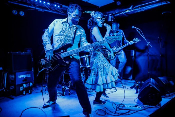 Lo que se multiplicaron fueron las sonrisas, los dedos que invocaban delirios mirando al techo, muchos y buenos empujones con cariño y, sobre todo, la transpiración sana y deseada. No se soplaron velas, pero se sudó más que la cera de un cirio en vigilia. Era el cumpleaños de la eterna resurrección de Los Paniks, que hacían veinte años bien llevados como banda (especial aquí) y le dijeron ¡vente! a los vallecanos Juana Chicharro, ¡que vamos a montar un sarao! Y se montó. Eligieron un remozado Mendigo Aretoa, con las paredes pintadas y sus afanadas y simpáticas currantes siempre al callo, que, con eso, ya no se puede pedir mucho más. Que fuera así todos los días, yo pedía, pero eso es mucho pedir, que ni con intervención divina.