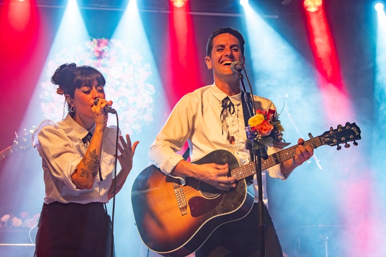 Como ya hemos comentado, el concierto es un jueves y a pesar de ello la sala presenta más de media entrada que llena la pista puntualmente a las 22:00 de la noche y espera impaciente el comienzo del bolo. Pasados diez minutos de la hora fijada los seis componentes de Pasadena ya están en el escenario donde un sample de teclados cuasi sinfónicos hace de intro para que cada miembro del sexteto tome posiciones frente a sus instrumentos. La guitarra acústica de Jon Basaguren y unos tenues teclados nos introducen en Sima, el tema que habré este concierto y su primer trabajo: el LP homónimo "Pasadena" (Erraia, 2021). Tema a 2 voces con un interludio cantado, casi susurrado, a monosílabos, de un lirismo apabullante (...bai-na gaur, piz-tu da, ar-gi bat, zu-lo-an...). Continuan sin pausa con "Arraza Gabeko Zakur", también de su primer trabajo con la guitarra del nunca suficientemente valorado Danilo Foronda entrando y saliendo, marcando cada entrada y salida de estrofa. Y un final donde la Fender Jaguar impone su ley arrastrando a toda la banda. Para entonces el sonido ya es perfecto y definido, tanto en los pasajes más acústicos como con la banda desatada. "Itzuli", probablemente su tema más corto nos da una pausa, con un toque neocountry que por momentos nos hace pensar en los Cowboy Junkies, con Danilo al slide. Una banda contenida dejando que las voces empujen el tema es la propuesta en "Zerua Ireki" que es además el primer tema de la noche de su segundo y último trabajo discográfico, "IZPIA" (EP, Erraia 2022). "Ez Gara Hil Behar" aúna elegancia y calidad y nos presenta una acústica más potente y percusiva. Continuan con uno de los temas más celebrados por el público, "Bihotz Taupada eta Labana" donde Libe deja su telecaster para acompañar en las teclas de la intro. Pegadizo estribillo y un final con toda la banda en climax que todavía sube más gracias el solo final de Danilo. Sí, otra vez Danilo. Estamos ante probablemente el mejor momento de este bolo.