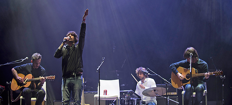 De Granada precisamente llegaban Lori Meyers, últimos en sumarse al multitudinario cartel tras presentar su nuevo disco el pasado viernes en La Riviera. Un breve set acústico con clásicos de su repertorio como "Luces de Neón", "Emborracharme" y la nueva "Siempre brilla el sol" servía de contrapunto a una noche que había comenzado con Teo Cardalda recordando a Golpes Bajos y a Cómplices; Rubén Pozo interpretando "Margot", de Pereza; y un espídico Bernardo Vázques de The Refrescos cantando, cuál si no, "Aquí no hay playa". Una banda base capitaneada por Charlie Bautista y Martí Perarnau permitió que durante más de 3 horas los líderes de bandas de distintas generaciones subiesen a defender sus mayores éxitos.