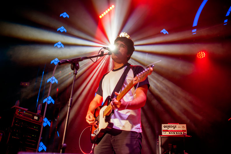 A continuación llegarían los murcianos Perro. Había especial expectación por ellos, que llegaban a la capital con su excelente último trabajo todavía calentito. ”Estudias, navajas” (Miel de Moscas/Gran Sol, 15), será recordado, sin duda, como uno de los discos nacionales del presente año (atentos a nuestra lista). El grupo irrumpió en el escenario como un elefante en una cacharrería. Tras apenas dos temas (y sin necesidad de hacer grandes alardes) ya nos tenían a todos brincando como posesos. El sentido rítmico del cuarteto es absolutamente encomiable. A fin de cuentas, pocas bandas se atreven a día de hoy con dos baterías (¡dos!). Pero la singularidad de Perro no se reduce, ni mucho menos, a su versatilidad con los instrumentos. Su particular thermomix procesa ingredientes propios del indie, el punk, el pop, el noise y hasta el krautrock. El producto es una delirante papilla sonora que, lejos de resultar indigesta, revitaliza cuerpo y mente. Eso por no hablar de sus letras, tan desternillantes como geniales. ¿Qué otra cosa se puede decir de canciones que hablan del segundo apellido de Jordi Hurtado o sobre reptilianos que escriben sobre humanos? El contenido lúdico es una pieza fundamental de su propuesta y así lo entiende la audiencia, que, no en vano, sigue respondiendo con mayor entusiasmo ante los temas de su primer álbum, el también destacado “Tiene bacalao, tiene melodía” ( Miel de Moscas 2013). La traca final, con “La reina de Inglaterra”, “Droga porro”, ”OLRAIT” y “Marlotina” fue de órdago.