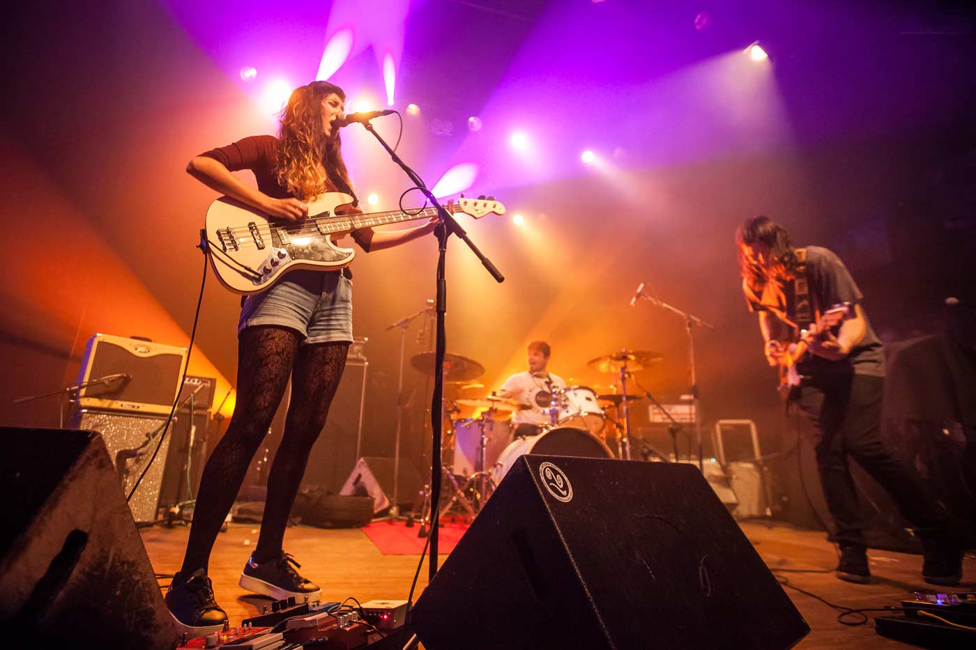 El trío, también de Mungia, Leun (foto inferior) fue el encargado de calentar motores en una noche cuando menos prometedora. Y si, en principio, su propuesta de atmósferas envolventes y temas cantados en inglés parecía habitar universos totalmente opuestos al plato principal, para servidor terminaron metiéndose en el bolsillo a buena parte del público a base de calidad y potencia. Sin riffs claros, sin estribillos evidentes, pero con una ejecución solvente y atractiva, Leun resultó ser un grupo más potente y rudo en directo que en disco. Jone Ibarretxe (bajo y voz), centrada y segura, sacó a ratos un sonido impresionante a las cuatro cuerdas: parecía imposible tocar más alto y más grave. Antton M. Goikoetxea buscaba en todo momento comunicación entre su guitarra y el bajo de Jone, a ratos parecía el líder y convenció en su estilo shoegaze (igual que Jone) y post rock. Poco contacto con el público pero, a cambio, máxima concentración.