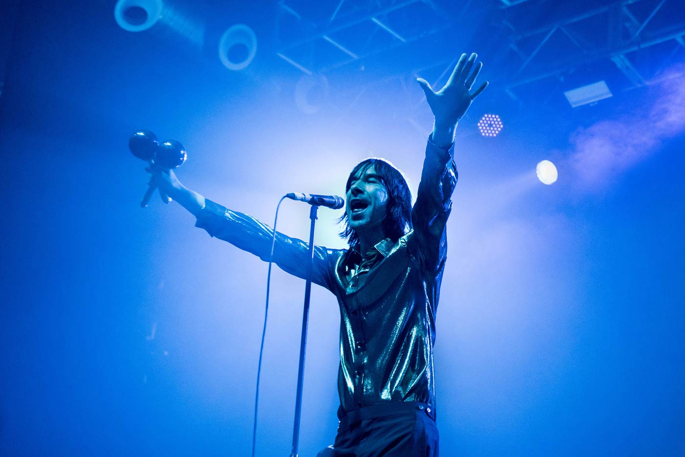 Lo cierto es que los escoceses se encontraron con una sala a medio gas. Quizá la proximidad en el calendario con otros festivales, no jugó a su favor. En todo caso Bobby Gillespie y compañía fueron a lo suyo, y se dedicaron a desgranar un breve set de tan solo once temas más un bis de dos más de propina. En total fue menos de una hora y media que sirvió para ver las dos caras del grupo. Por un lado la pésima, la de la desidia, la del piloto automático, la del mirar el reloj, que coincidió con el primer tramo del concierto. Gillespie tardó cinco temas en meterse en materia. Una lástima porque malgastó pelotazos de la talla de “Swastika Eyes”, con la que abrieron, “Slip Inside”, “Jailbird” y “Dolls”. Fue un inicio de concierto para olvidar, que les acercó más al concepto de pub band, y les alejó del de combo cósmico del rock, con integrantes procedentes de My Bloody Valentine (Kevin Shields) o The Stone Roses (Mani). Pero con “It’s alright, It’s OK” hubo una conexión con el público que ya no soltarían hasta el final. Enlazaron con la madchesteriana “Feeling Like a (Demon Again)” y dieron un descanso con “Star”, antes de encarar un tramo final en crescendo, protagonizado por “Loaded”, “Country Girl” –El mejor momento del concierto- y “Rocks”.