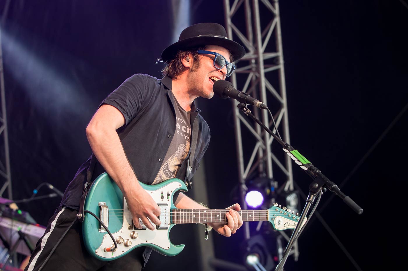 Temples (foto superior) se nos hicieron planos y eso que su neo-psicodelia tenía riffs gruesos y momentos extendidos interesantes. Gaz Coombes (foto inferior) en la carpa y con banda parecía que iba a ser una gran elección, y la propuesta más madura y a priori más interesante que sus extintos Supergrass, se vio ensombrecida por un sonido en el que faltaban coristas y voz del propio Gaz. La banda no muy engrasada tampoco aporto demasiado. Viendo lo que había nos pasamos a ver a unos Cigarrettes After Sex de riguroso negro y con un volumen muy bajito. Su dream pop muy 4AD, aburrió a algunos e hizo de banda sonora crepuscular prefecta para otros con temazos como “Apocalypse”.