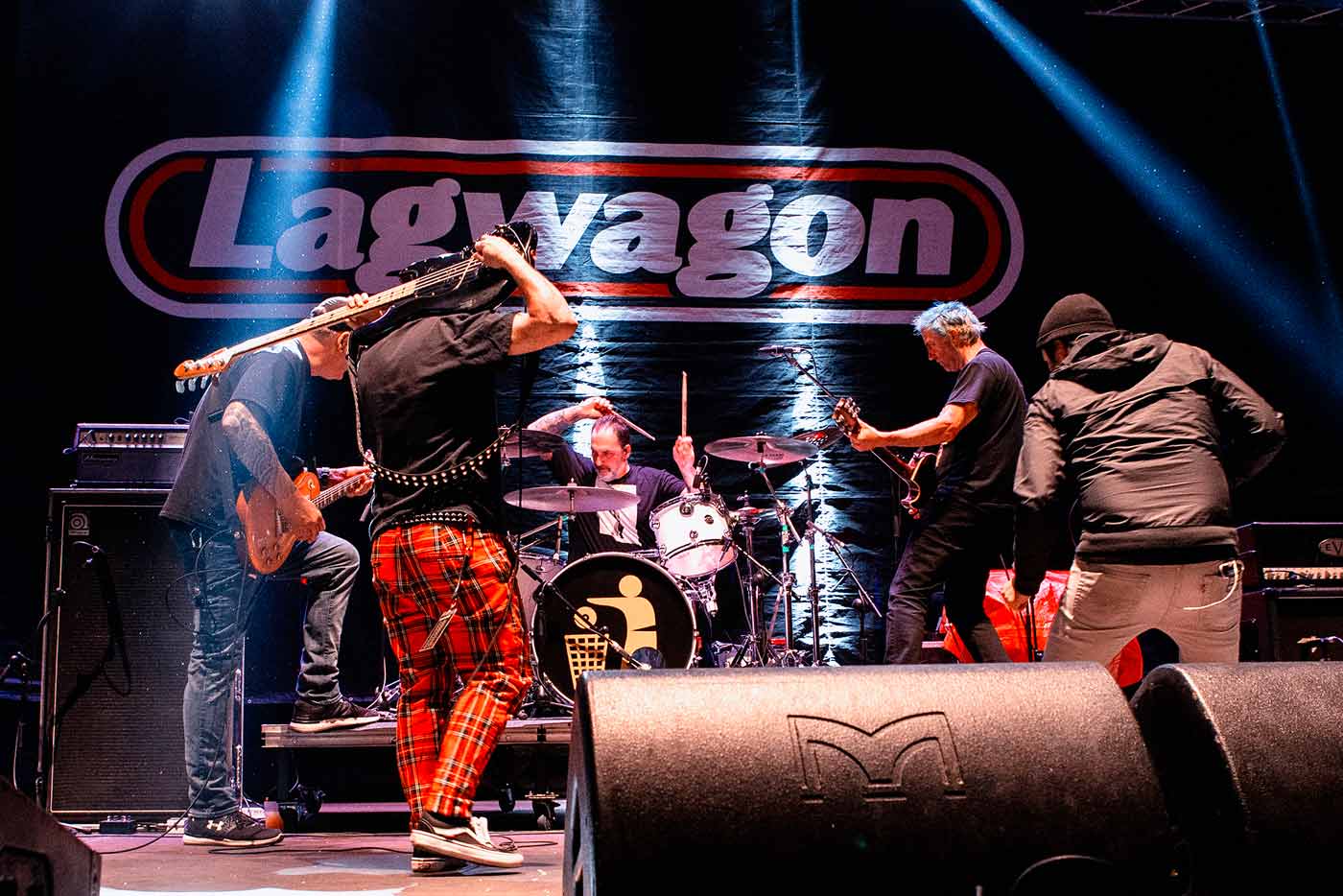 Lo relatado hasta el momento sirvió de introducción al esperado triunvirato de la noche. Los californianos Lagwagon, míticos militantes del punk rock melódico, desataron las hostilidades con uno de sus clásicos, "Razor Burn", con la mesiánica voz de Joey Cape al frente. Los éxitos se fueron amontonando unos encima de otros, con la trepidante "Violins" apostando fuerte por ser una de las triunfadoras de la velada. No se quedaron atrás el riff de guitarra sobre el que planea "Coffee And Cigarettes" y la salvaje sección rítmica, aliada con unos coros poderosos, de "Stokin' The Neighbors". La apoteosis rockera llegó con el punk metal pesadote, casi stoner de "Cog In The Machine", que yo dedicaría a las facciones más conservadoras de la política mundial. Por si el personal no estuviese ya lo suficientemente alborotado, "May 16" puso la guinda a un pastel bastante sabroso.
