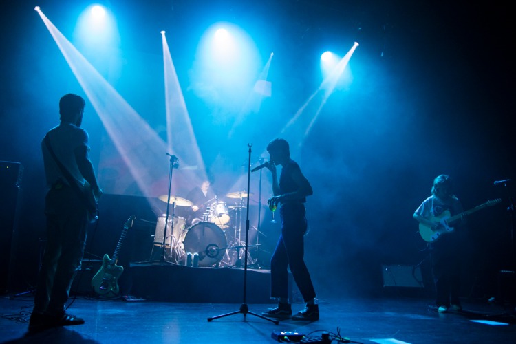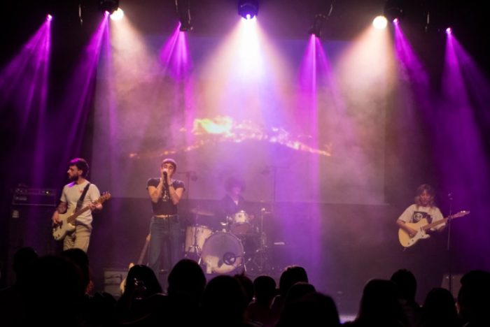 La sala estaba más empacada después de la salida a tomar aire de rigor, había mas curiosidad, quizás por la propuesta más rockera/bailable/eufórica. Una base solida de bajo y batería limpios y minuciosos adornada con autotune, sampleo y guitarras distorsionadas. Ah claro, y el show del frontman, que salió copa en mano para empezar con “No me ves” y “Ojalá no te hubiera conocido nunca”. Ese publico darks con toques fosforitos flow 2000 ya lanzaba las manos al aire y coreaba estos primeros hits de la banda (en torno a unas 50.000 escuchas en solo un año) cuando Sergio Nicolas planteaba “¿os gusta la bachata?” para marcarse una versionaza de “Bachata” de Manuel Turizo, uno de esos temas pop redondo que funciona en casi cualquier estilo.
