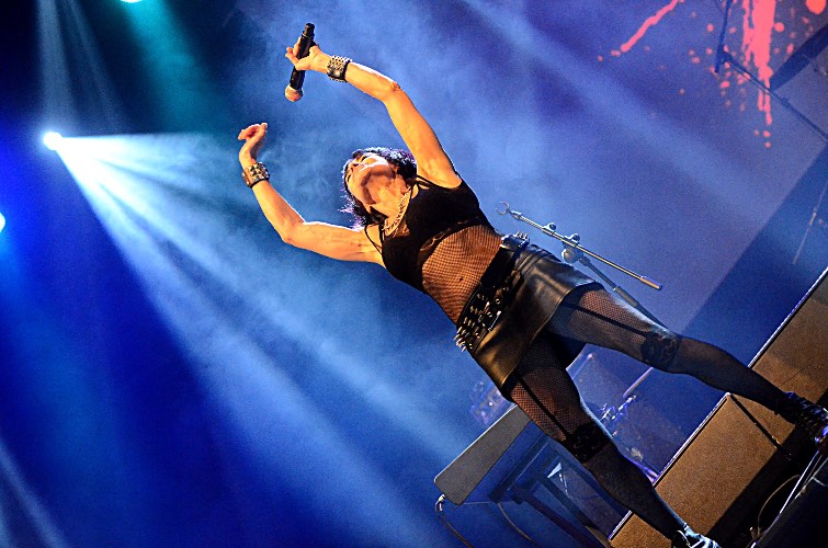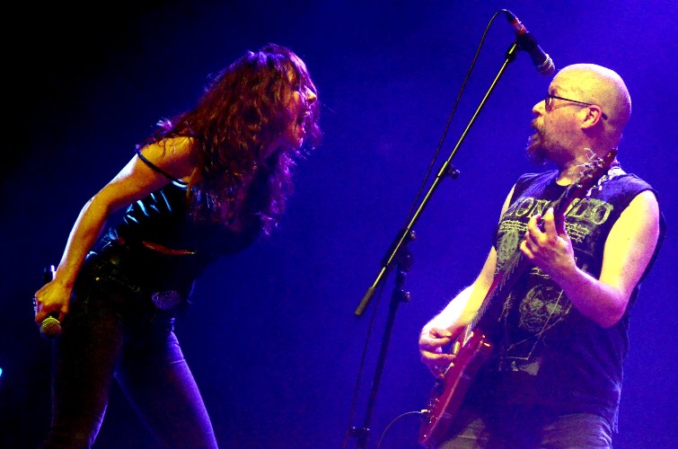 Con los acordes del “Réquiem en Re Menor. K. 626: Secuencia. Lacrimosa” (tácito y común homenaje a Eduardo Benavente y El Ángel) afloraba en la sala una más que bien conservada Ana Isabel Fernández (Ana Curra), acompañada por una rejuvenecida banda constituida por la histórica bajista de Las Víboras malasañeras, Klub (junto a Luis Auserón y su finado compañero, Enrique Sierra) o Los Ventiladores, Pilar Román, el parcheador Iván Santana (Santo. Digital 21…) y Ángel Berdiales (Liquid Sun, Khasmir, Manolo Tena…). Recordar que bajista y guitarrista también forman en la banda del Johnny Thunders de Xixona, Rober Perdut, y que echamos de menos al gran Cesar Scappa. La de El Escorial inició la misa negra con rock gótico post-afterpunk con “Fundido Negro”, sita en su último larga duración “Huaca”, para pasar inmediatamente a ejecutar marcialmente himnos “permanentes” como “El Acto”, la sublime “Nacidos para Dominar”, “Te Gustará”, unas remozadas “Heroes” y “Quiero ser Santa”, o “Tengo un Pasajero”, donde las imágenes de “Alien” bien podrían haber sido cambiadas por la ida que siniestramente azota diariamente a las almas andantes capitalinas. Las reminiscencias de pop pegamoide en “En esta tarde gris” y la potencia de unos Lords of the New Church en “Pájaros de Mal Agüero” (ambas de su primer álbum en solitario del 87), acompañaron a la cima a la reina absoluta del aquelarre diurno, la enigmática y creciente “Hiel”, una especie de oda litúrgica por los múltiples fallecidos en este nuevo mundo muerto que nos toca vivir, dada la venganza final de la naturaleza hacia el continuo y depredador ser humano.