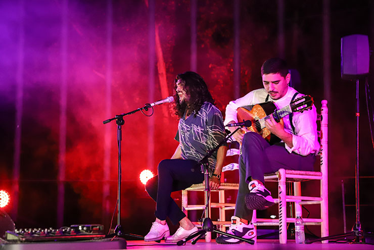El fin de fiesta llega de la mano de otra de las nuevas voces del momento, Cristian de Moret. Con su Supernova (21) bajo el brazo le pone la guinda perfecta a una de las citas con más arte que se recuerdan en Alhautor. Entre el público (los que aún no lo conocían), se escuchan comentarios como: “¡Qué voz tiene!”, “Entre Camarón y Jimi Hendrix”, “Es el nuevo Raimundo...”. Con su eléctrica enfundada y acompañado hoy de su hermano al bajo y teclados atmosféricos, desgrana su sobresaliente debut, demostrando un conocimiento jondo, magnetismo y fuerza que hace imposible perderle la pista. Una mixtura de sonidos en los que defiende la tradición y la electrifica propulsándola al espacio exterior. Borda los tangos del “Pañuelo”, la debla “Geometría sagrada” y la trilla “Meteoro”, cambiando guitarra por teclados. Demuestra con soltura sus vastos saberes intercalando palos, fusionándolos con jazz, rock o funky con la misma naturalidad. Poderío a cada paso. De granaínas, a alegrías de Cádiz, pasando por fandangos de Paco Toronjo o los sones africanos de“Alas”, precedida de una coreada versión de “La leyenda del tiempo” y finalizando con un atrevido y festivo tema a ritmo de cumbia.