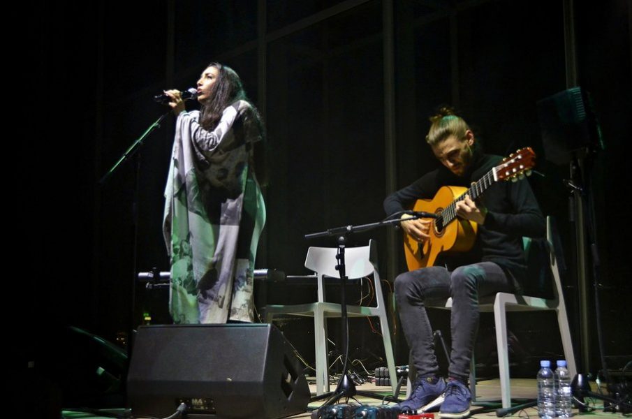 Poco se habla de María José Llergo si echamos un vistazo al cancionero que ha armado en los últimos años, y más, después de ver (y sentir) de cerca lo que es capaz de hacer sobre las tablas. Perfectamente acompañada por el guitarrista Marc López, la cordobesa comenzó el concierto con repertorio ortodoxo donde los fandangos y los tangos fueron protagonistas. Y con Niña de las dunas” y “Canción de soldados”, de Sánchez Ferlosio, ya dejó claro, si quedaba alguna duda, que puede con todo. La artista se mostró muy cercana con el público en todo momento, con humildad y mimo presentó las canciones que formarán parte de su primer disco (que verá la luz en 2020). En ese momento Carlos R. Pinto se une a la pareja para hacerse cargo de los teclados y programaciones y el concierto muta. Los sonidos más urbanos encajan a la perfección con guitarra y voz, y nos regalan momentos oníricos como “El hombre”.