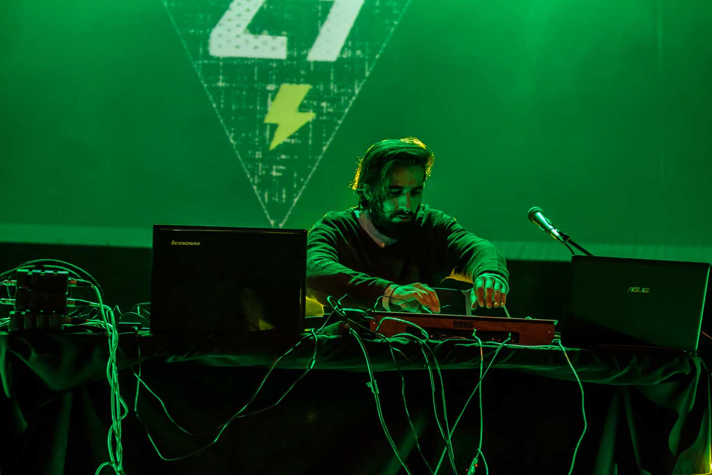 Después llegó el turno de Fuerte Bandido (foto inferior), proyecto en solitario del tiñerfeño afincado en Madrid, Juan Hernández, que con su ordenador se movió entre la electrónica y el trip hop, comenzando pausado y añadiendo capas a los temas. Su propuesta resultó más compleja e interesante que la de Planetoid, gracias a las variaciones de intensidad y a un excelente sonido.