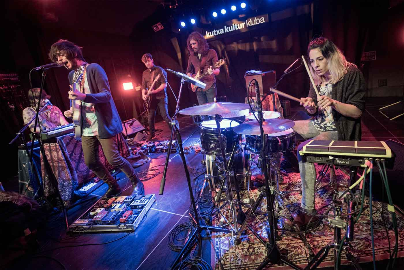 Esta buena sintonía entre el grupo y la sala se fue haciendo cada vez más palpable según iban pasando los minutos del concierto. Sin el frenetismo de otras citas (muchos solo les hemos visto en festivales, claro está), el grupo de Aranjuez seguía más o menos su esquema habitual pero en un tono más pausado y relajado, como recreándose y disfrutando más si cabe de su propia música. Incluso, “estaban tan a gusto” que se animaron a improvisar algo más de la cuenta con el permiso de unos asistentes que agradecieron la bocanada de aire fresco.