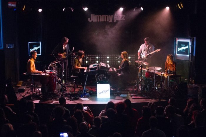 ”Planet Caravan”, de Black Sabbath, ejerció de intro sorprendente (quizás no tanto), y dio paso a la quietud y el sosiego de “Torre de marfil”, que inició el concierto con ese destacable in crescendo que sentó las bases de una actuación que mantuvo un nivel muy notable durante toda la noche. “Tempelhof” continuó caminando por la senda abierta en la maleza psicodélica y melodiosa que moldea el particular universo creado por el grupo de Aranjuez. Los sintetizadores se desataron en “El largo mañana” y provocaron los primeros bailes entre el numeroso público que se acercó a la sala Jimmy Jazz en pleno sábado de Carnaval. Según nos contó el cantante y multiinstrumentista Víctor Cabezuelo, la costumbre de disfrazarse en tal fecha no está instaurada en Madrid, pero prometió acudir con disfraz la próxima vez que aterrice en tierras vitorianas.