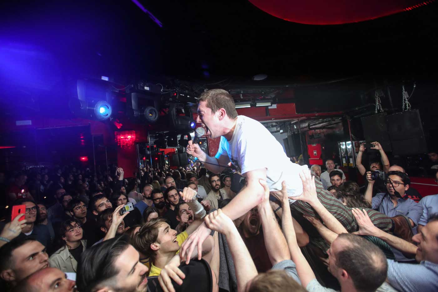 Sonaron todos los temas del disco, más alguno nuevo y la energía del concierto supuraba ya desde el arranque (Dust on Trial), donde Charlie no esperó ni a la segunda canción para hacer el primer crowdsurfing de la noche. Concrete, One Rizla o Friction tuvieron una acogida fortísima en el público, que coreaba los temas como si Shame jugaran en casa y movió a las primeras filas en un pogo que duró del principio al final. Tasteless marcó uno de los puntos álgidos de la noche, con público y banda comulgando en una mezcla de distorsión, rabia y sudor: los momentos cumbre de los temas ponían a Josh por los aires. Y quizás ese sea el problema de Shame: un bolo que se mantiene siempre arriba termina por hacer monótona la extravagancia.