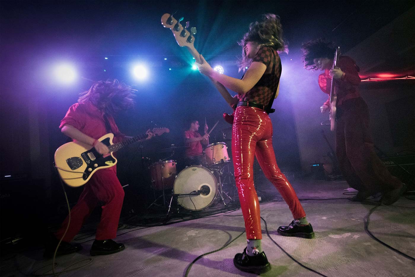 Cuando faltaban sólo unos minutos para su entrada en escena, las compañeras de Melenas (foto inferior) llegaron a la carrera, sin resuello y con los instrumentos a cuestas. Tuvieron que probar el sonido en 0,2 segundos y, sin pensárselo demasiado, Oihana, Leire, María y Lauri se pusieron manos a la obra. Su mezcla de pop, psicodelia y garaje es bien conocida por estos pagos porque aunque proceden de la incandescente escena pamplonesa, en el Dabadaba se sienten «como en casa», pues fue el sello de la sala de Egia, Elsa Records, el que editó su chispeante debut de 2017. El ‘reverb’, el ‘fuzz’ y los sugerentes pasajes de teclado se aliaron con melodías amorosas, unas veces más calmadas y otras más nerviosas, como ‘¿Dónde estás?’, ‘Volaremos’, ‘Alfajarín’, ‘Una voz’ o ‘Cartel de neón’. También presentaron una prometedora canción inédita que tal vez incluyan en futuros trabajos.
