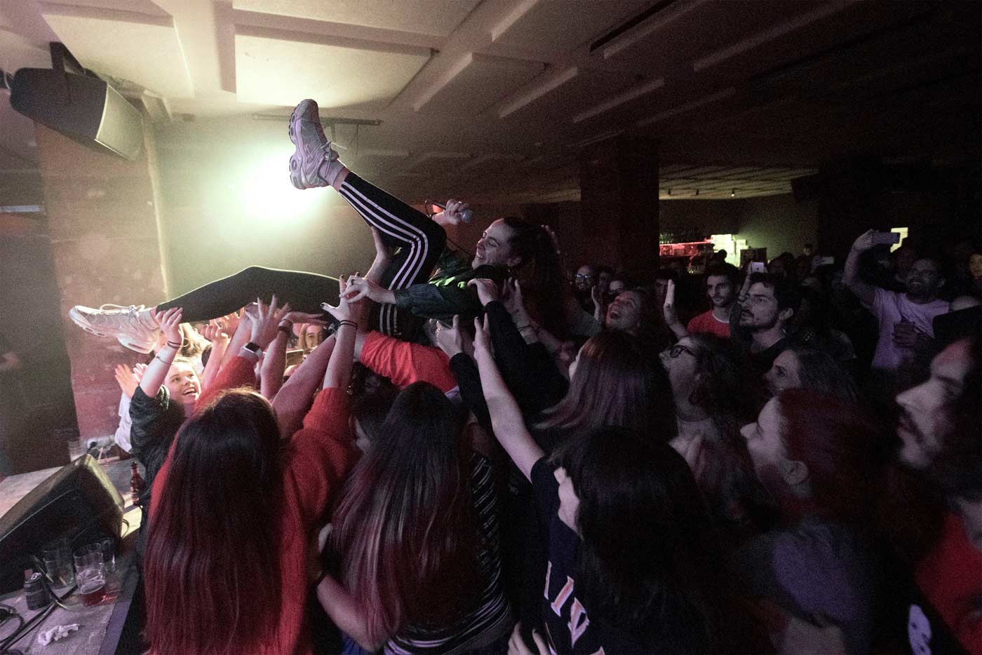 «¡Somos las putas Hinds!»(foto inferior y encabezado), rugieron Carlotta, Ana, Ade y Amber, tan o más internacionales que Mourn. Precisamente, la de Donostia era la penúltima fecha de su segunda gira mundial de este año, y en el puesto de merchandising, los precios de los discos estaban fijados en euros y libras. Otros detalles dieron fe de la dimensión que ha adquirido el grupo en poco tiempo: su mastodóntico equipo de sonido, la atención continua que les dispensó su resolutivo ‘pipa’ y, cómo no, las hordas de jóvenes que se apelotonaron en las primeras filas. Empezaron con ‘Soberland’ y después, siempre entre punteos surferos, ecos de garaje lo-fi y coros alocados, retrocedieron a su primer disco, "Leave Me Alone" (2016), con ‘Chili Town’, ‘San Diego’, ‘Easy’ y ‘Garden’. Después se enfocaron en ‘British Mind’ y buena parte del segundo álbum, "I Don’t Run" (2018), del que sonaron ‘Linda’, ‘The Club’ y ‘Tester’, dedicado a todas las chicas del garito tras el preceptivo «¡Vivan las mujeres!» Después de ‘Rookie’, en la que Ana García Perrote se marcó un raudo ‘crowdsurfing’, versionaron el ‘Spanish Bombs’ de The Clash y uno de sus himnos, ‘Bamboo’, al que siguieron ‘Finally Floating’, ‘Castigadas en el granero’ y ‘New For You’, en las que el pogo y el desenfreno inundaron la zona delantera. Las chicas fueron aplaudidas y vitoreadas como auténticas ‘ídolas’ mientras sonaba a tope por los altavoces el ‘Always Look on the Bright Side Of Life’ de los Monty Python, un luminoso colofón para una divertida y reivindicativa verbena.