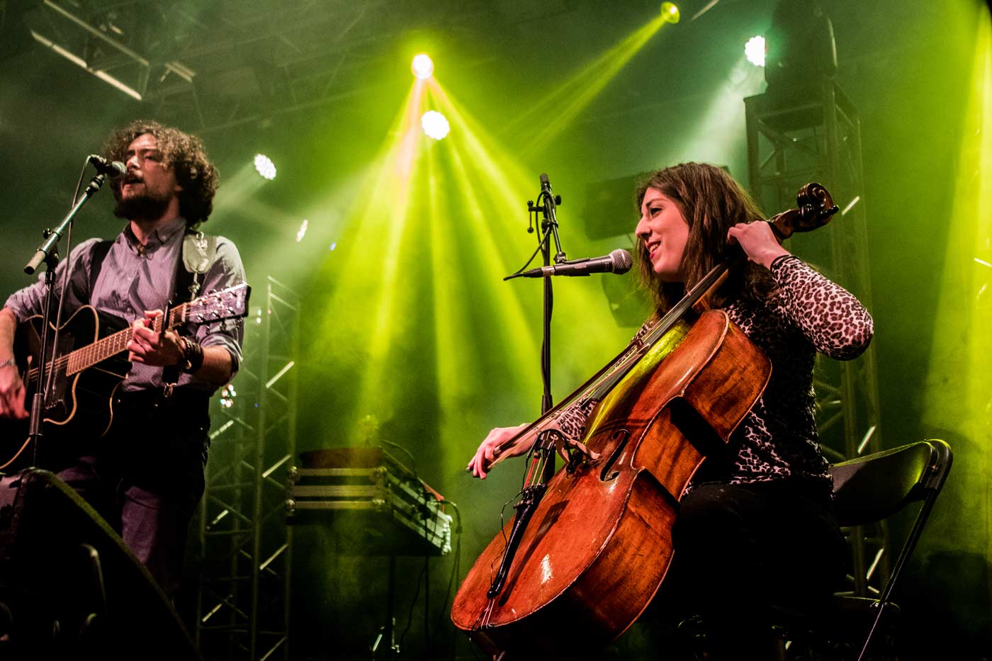 Como en las ventas que fueron testigo de las obras de Feliciana Enríquez o de Lope de Vega, Mariano Estudillo (ex Tábula Rasa) y la chelista Nerea Aizpurua abrieron la velada con melodías acústicas, folklóricas, ardientes y bucólicas entroncadas en apasionados versos cuan juglares de un reino feudal, a elegir, nutrido por el arte y la cultura. Homónimo y evocador a la novela de Cervantes, Licenciado Vidriera prendió la llama con el cover de León Benavente “Ser brigada” y continuaron cuidadosamente el set list con temas propios como “Empezar”, eso si, aderezados por una simpatía contagiosa que unió a todos y a todas las presentes. El diálogo entre artista y audiencia fue constante y esto quitó peso a la posible tensión del formato acústico en el que se presentaban.