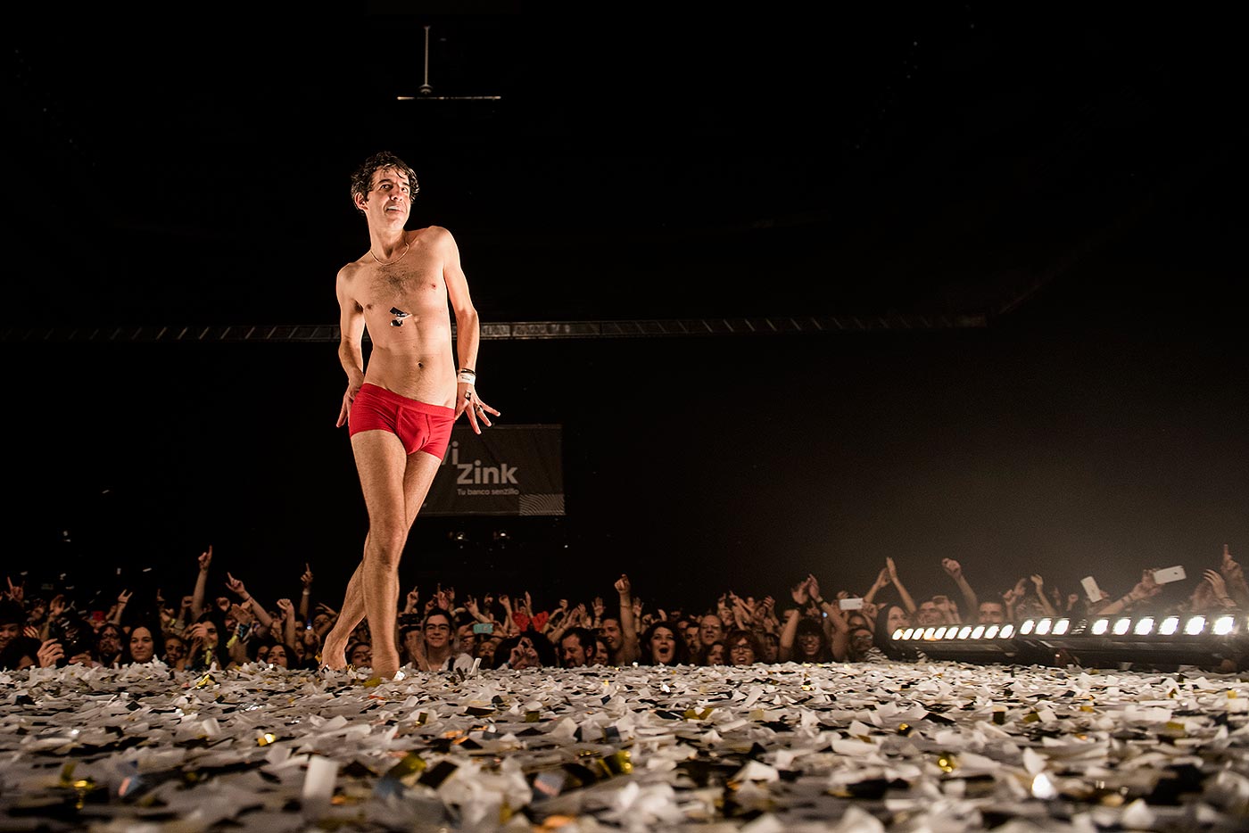 Casi veinte campanadas después, el personal había hecho suyas todas las canciones, y aún quedaban las más queridas, si cabe. Tras la breve retirada de rigor, con cuernos de reno y cerveza en mano, regresaron Sidonie para proceder con la pirotecnia final, previa declaración de amor entre sus componentes. Ros se paseó a hombros por la pista para el tradicional baño de masas de Un día de mierda –un crío saludaba al cantante desde la distancia, como si fuera un Rey Mago–, se colgó de nuevo la guitarra para encender la mecha final con El incendio y alcanzar el clímax de la comunión con Estáis aquí. Ros, Senra y Pi terminaron la velada en ropa interior (roja, por supuesto) y así la banda al completo se dejó vestir por el baño de confeti que marcó el fin pero también el inicio de un nuevo año para Sidonie, el mejor que podría haber esperado “el peor grupo del mundo”.
