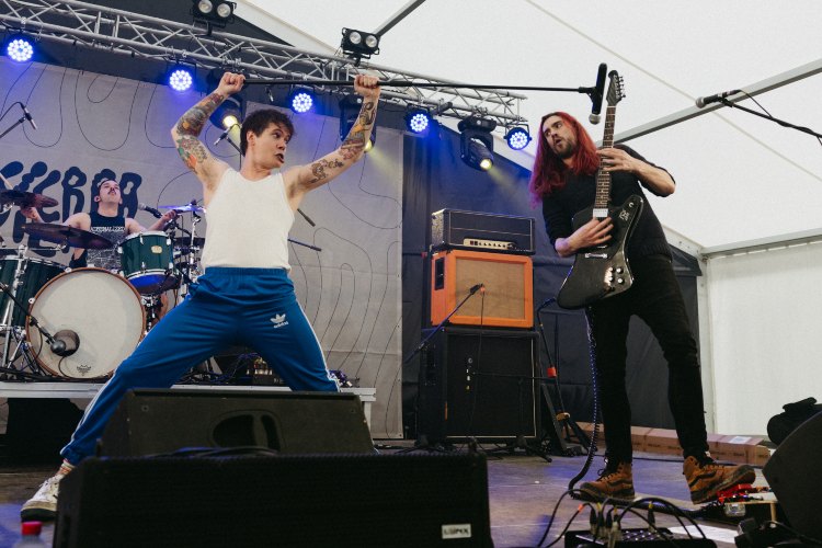 La tarde retomó el pulso a las 18:00 con el rugido de los amplis (en plural, sí) de Koldo y los tambores de Úrsula marcando el inicio del asalto sonoro de Niña Coyote eta Chico Tornado. El dúo donostiarra ofreció exactamente lo que prometía su reputación: un directo brutal, sin fisuras, directo a la yugular. Un torbellino de distorsión y ritmo que golpea el estómago mientras en el escenario ambos se mueven con la naturalidad de quien lleva años construyendo un lenguaje propio.
