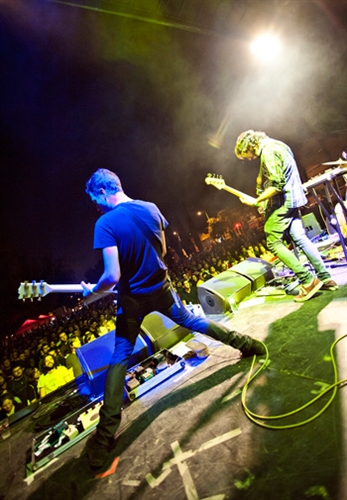 Anicet Lavodrama y su universo particular tomaron el relevo. Sin embargo las imaginativas y coloquiales historias no parecieron enganchar al personal, por mucho que lo diesen todo. Antes de dar por concluida su actuación lanzaron un mensaje a favor del programa “Carne cruda” de Radio 3, víctima de los recortes ideológicos del gobierno actual. Tras ellos, llegaron los triunfadores de la noche. Los madrileños Toundra (en la foto) ofrecieron una actuación vibrante y compacta a base de post-metal instrumental repleto de bajadas y subidas, que atrapó al numeroso público que se había acercado hasta allí por ellos para descubrir qué tal sonaban en directo los temas de su recién editado “III” (Aloud, 12). En una hora de show demostraron lo intensos, compactos y aplastantes que pueden llegar a ser. Lo dicho, lo mejor de la noche.