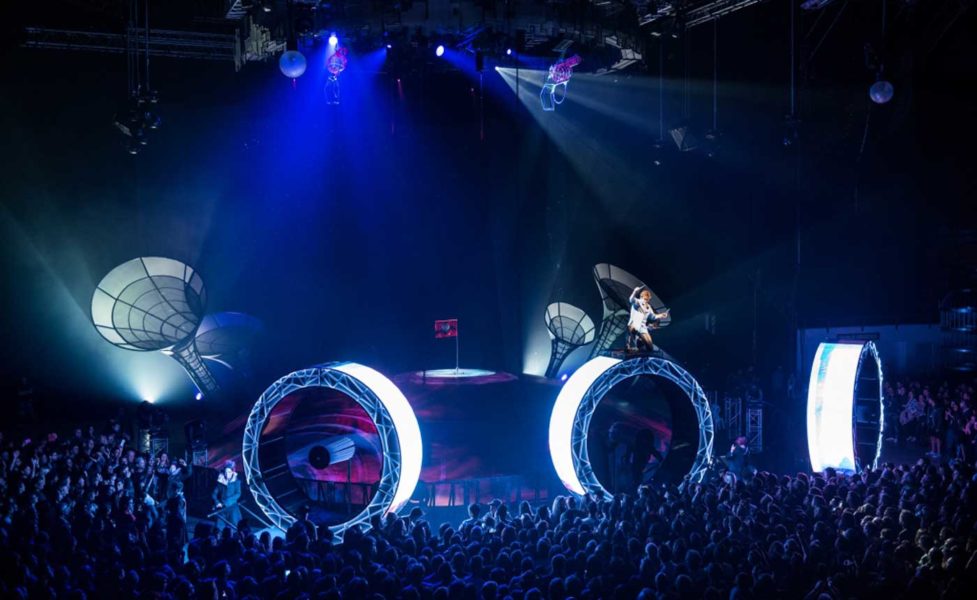 Con la mirada puesta en un tiempo de más allá, el Cirque du Soleil se ha instalado hasta el día 23 de septiembre en el estadio Luna Park para cerrar con broche de oro la gira de un show que ha recorrido 10 países y 16 ciudades de América con más de 250 funciones y del que han disfrutado un millón y medio de espectadores. El despliegue visual es abrumador. Desde las primeras notas y hasta el final del show desfilan por el escenario una tropa de acróbatas, bufones, pallasos, bailarines, trapecistas y músicos que revisitan los grandes éxitos del vasto repertorio del trío porteño con las fórmulas del circo contemporáneo.