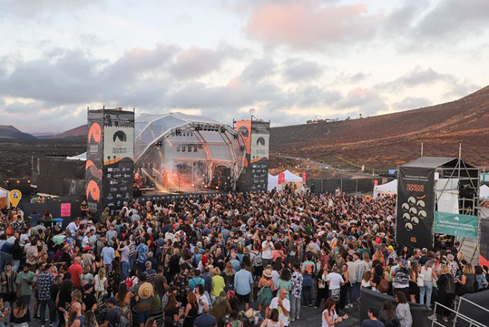 Nos adentramos en el paisaje protegido (guaguas y lanzaderas del festival para preservar la fragilidad del entorno, una de las numerosas medidas desplegadas para cuidar un rincón único en el mundo), La Geria, y comienza a desplegarse ante nuestros ojos una paleta de colores e imágenes de otro planeta: cientos y cientos de inmensos hoyos cónicos excavados en capas naturales de grava volcánica, rodeados en su borde por una media luna de rocas que en su día también fueron fuego, como protección contra el viento, y en el centro de cada uno de ellos, una vid de uva blanca de malvasía. Ocre, negro y verde esperanza que dan como fruto, vinos reconocidos internacionalmente que podremos volver a degustar, además de platos típicos y productos locales, con música en directo y en el mejor de los ambientes (sin masificaciones, sold out de 2.800 personas y con dos escenarios), en los exteriores de la Bodega La Geria, una de las más antiguas de Canarias.