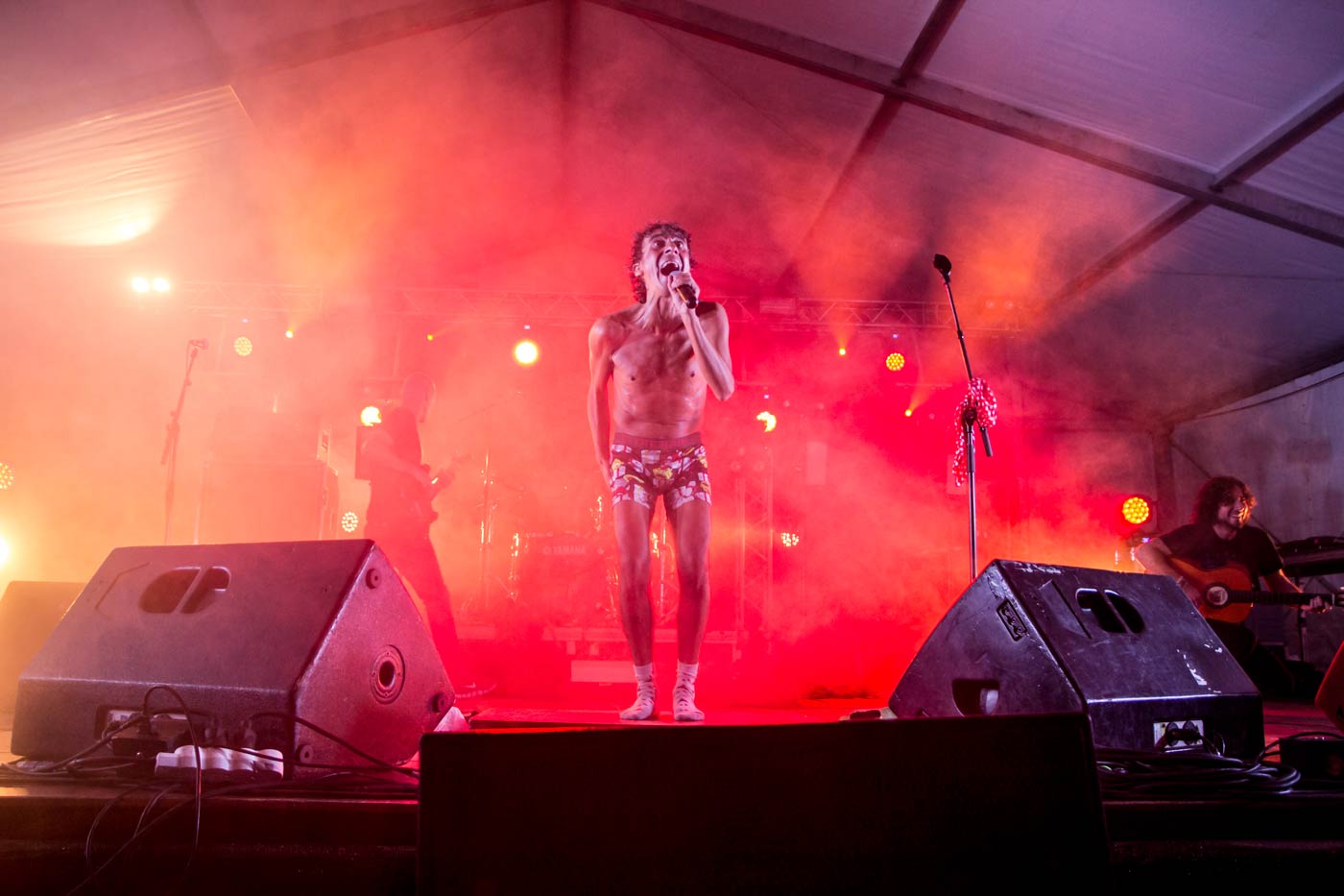 Señores nos preguntan si ya echamos de menos el verano, y se contestan ellos mismos: “Sí, porque no lo ha habido”. El espíritu de la verbena llega con ellos, con sus letras ácidas, cuerdas fieras y melodías plañideras. Como cabía esperar, “Democracia enferma”, de su autoeditado álbum "La luz" (2016), se antoja (triste) banda sonora actual. Asier Goikoetxea, voz y guitarra, recibe aplausos del público al recordar que la democracia “está bien enferma” y clamar que Catalunya “pueda expresar lo que quiera”. Entona con ímpetu el taladrador “im-píiiii-denoslo” del estribillo. Sobre una base ambiental bulle “Masa Madre”, cuya progresión pop se funde con otro himno socarrón y actual como “Corporarturo Avaricio”.