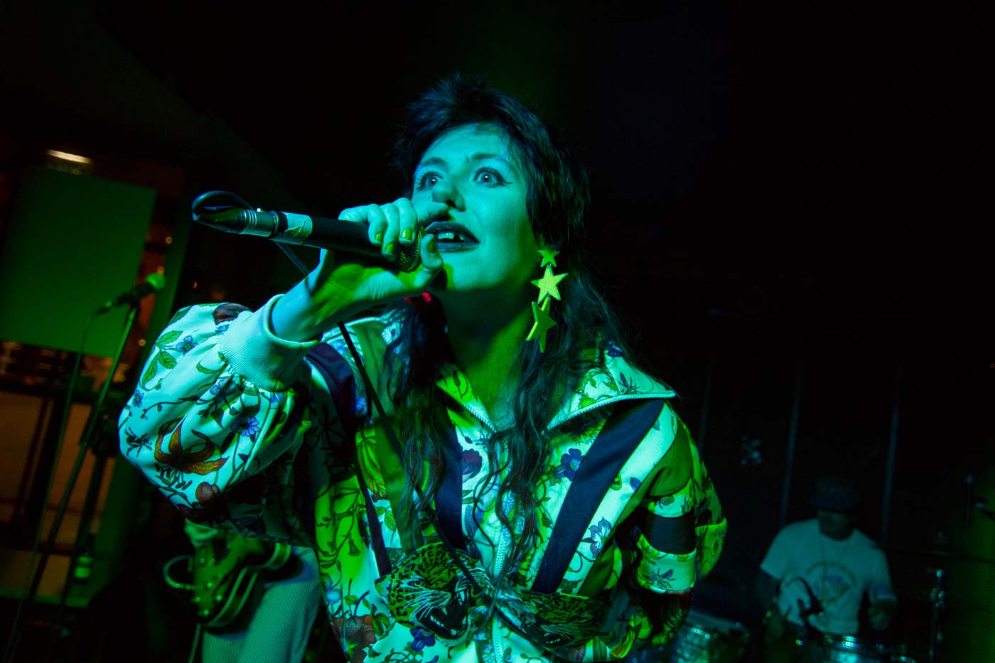 Tras encadenar las tres primeras canciones sin apenas espacio para coger aire, finalmente la descarada cantante de Surfbort se dirige al respetable para presentar "Where’s my shit", canción que va “de cuando te despiertas después de un buen pedo y no sabes dónde estás”. Más cercana a Ari Up (The Slits), que a Courtney Love (Hole) a pesar del deje grunge de algunos pasajes que recuerdan a L7, la presencia escénica de la vocalista es innegable. Sobre todo cuando entona himnos de liberación sexual como "Les be in love". Descarada y divertida, no hay momento para el aburrimiento de Dani. Si hace falta canta con dos micros aunque uno de ellos acabe en el suelo del escenario, baja a cantar entre y con el público, se queda en bikini alardeando de pelos en las axilas o se burla de nuestra adicción a los móviles antes de entonar ese himno milenial que es "Selfie". “You take five hundred selfies a day, you can´t look away from the mirror or your camera…” Mensaje irónico que se pierde en la traducción mientras parte del escaso público congregado se dedica a inmortalizar y compartir el momento en lugar de disfrutarlo.