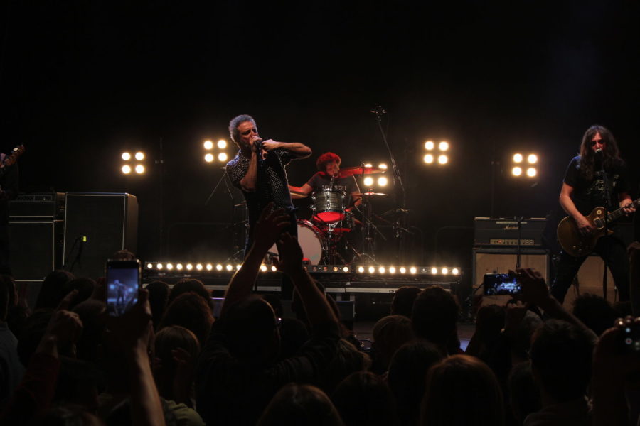 Una sala casi llena se preparaba para recibirle acompañado de su banda, la Asociación del Riff, formada por Carlos Raya a la guitarra, Iván “Chapo” González al bajo y Coki Giménez a la batería. Formación clásica donde las haya.