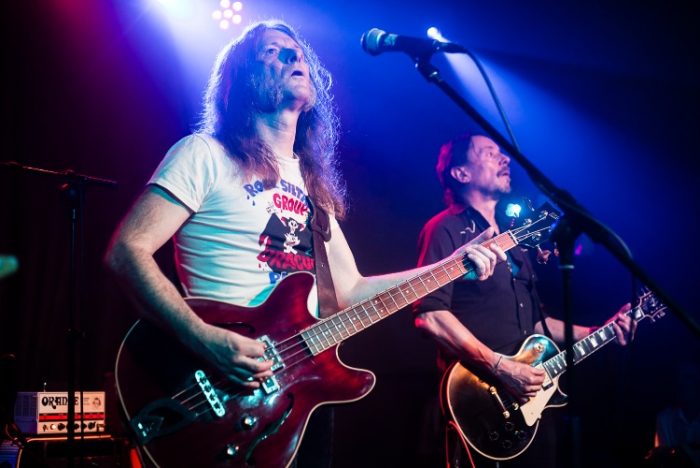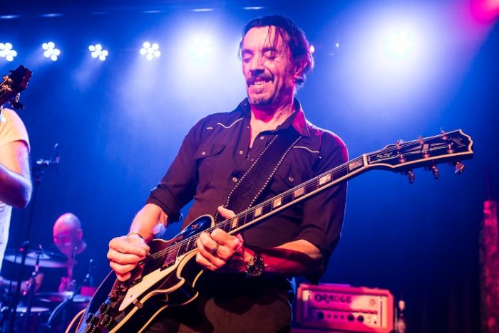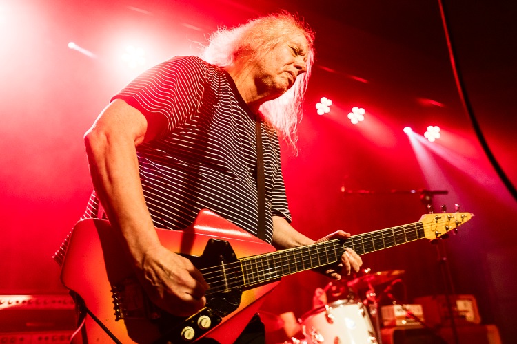 El cuarteto se paseó por varias de las épocas y bastantes de los discos del proyecto, destacando el rock de «Hole Song #2», estupendas canciones del siglo XXI como la melódica «Flood Warning», «Johnny Kwango» o la sorpresa de «Pale Blue Blood», incluida en el Example 22 del 2015 y con un solo final que levantó una gran ovación. De hecho, de lo más reseñable del bolo fue la interacción de las dos guitarras y cómo se cedían el turno entre Simmons y Saloman, creando alquimia de manera intuitiva. De su más reciente lanzamiento, el excelente Focus on Nature, más bien pronto nos adentramos en «Mr Fred’s Disco» con su olor a Neil y su caballo loco y dejaron para la recta final otras dos nuevas muestras que bien parecían clásicos de toda la vida del grupo: la irrebatible «Heat» y la coreada «Big Black Sky».