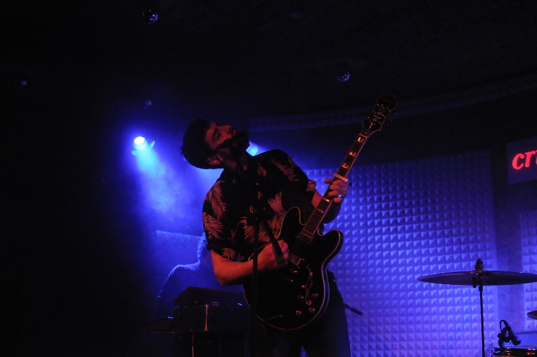 Llegó la hora del debut de los vallisoletanos The Levitants en la capital guipuzcoana. Comenzaron con un buen guiño y un gran tema: "Hay alguien ahí". Canción con la que no sólo llaman a los rezagados de las barras del bar si no en la que enlazan con elegancia una letra en inglés y un estribillo en castellano. Sin desmerecer el trabajo del anterior técnico, que también hizo lo que estuvo en su mano, tres minutos de canción y ya se nota una mejora de sonido más que considerable con respecto a la primera actuación. Algo que no hace más que reafirmar lo importante que puede ser hoy en día que cada banda lleve su propio técnico de sonido para que funcione como uno más del grupo (aún más si cabe, en situaciones como esta en las que el ambiente no tiene de por sí una acústica muy buena, que el técnico conozca tus temas puede salvar gran parte del show y así fue. Su acierto, como veremos, fue precisamente que los temas pudiesen brillar por si mismos). Continuaron con "Coimbra", tema que incluyeron tanto en su EP como en su larga duración. Suenan al dente, nada fuera de sitio. Incluso el sonido de directo les daba un toque de crudeza que les sentaba a la perfección. “Nino Bravo” fue el tercer tema que les sirvió para seguir metiendo en ambiente al personal. Vuelven al disco que presentan ("Enola") con el medio tiempo “Telescape” (uno de mis temas favoritos) que a base de repeticiones hipnóticas y guitarras afiladas les sirvió de lanzadera para llegar a uno de los puntos álgidos del concierto con “Red Lines”. Uno de los cuatro singles de su disco con el que pusieron a toda la sala a bailar a base de dark rock enérgico. Comenzaron un poco cruzados en “Adult Life”. Nada que desmereciera, sin embargo, este tema coronado a base de sintes noventeros y una bonita voz. Pasamos al tema que da nombre al disco “Enola (M de llorar)”: tema pausado, de atmósferas aterciopeladas y que bien podría colarse en algún capítulo de la grandísima serie Twin Peaks. Llegamos aquí a otro bonito punto del concierto en el que Sergio (voz y guitarra) se baja del escenario a interpretar totalmente desenchufado “Ancient Times”. Un giro que quizás no se vea mucho en estos géneros musicales y que le sirvió para terminar de encandilar a los/as asistentes. De nuevo con toda la formación sobre el escenario, “From the Other Side (Driving)” tema de reminiscencias a Death From Above 1979 cierra esta sección del concierto más tranquila para dar paso a la traca final conformada por “Suicide” con sus bonitas melodías Bauhauseras, “Kolmanskop”, directa al corazón y “Light and Strokes” con la que con sus melodías brillantes y su riffs contundentes (e incluso con algún toque a Kyuss) dan punto y final a un muy buen concierto.