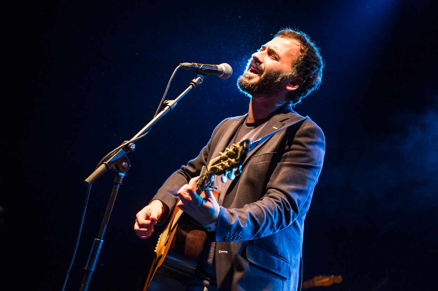 The New Raemon nos invitó a todos los presentes a acompañarle en un viaje personal que tomaba como inicio de trayecto algunas de las canciones más recientes del grupo, “Oh, Rompehielos” y “Reina del Amazonas”. La ilusión y la felicidad por compartir aquella experiencia con el público se veían reflejadas en los ojos de Ramón, los cuáles brillaron durante toda la noche. Y qué menos cuando de las treinta y tres canciones del repertorio, más de la mitad eran enérgicamente coreadas por un público que echaba de menos escuchar en directo (y con la banda) canciones como “La cafetera”, “Sucedáneos” o “Por tradición”. Aunque la fuerza y la compenetración fueron las grandes protagonistas, ambas encontraban en temas como la cautivadora y desgarrada “El Yeti” o la luminosa “Centinela” –de las pocas canciones que hablan sobre cosas bonitas- momentos para hacer deslumbrar la templada voz de Ramón, la cuál se mostró firme a lo largo del concierto. A la grata compañía de la banda se sumó Ricardo Lezón (McEnroe), quien subió al escenario para interpretar junto al anfitrión tres canciones que demostraban tanto el increíble talento del vasco como la buena sintonía entre ambos, la cuál los ha llevado a crear un nuevo proyecto juntos.