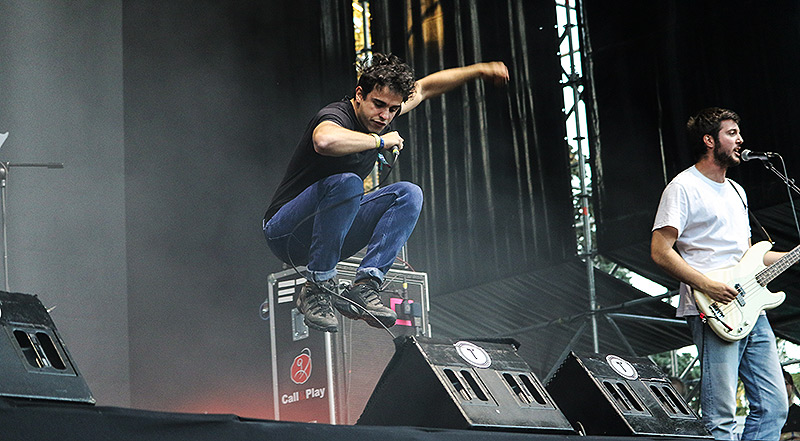 La fiesta volvía al escenario principal con Triángulo de Amor Bizarro, un grupo ya casi fijo en Tomavistas (¡es la tercera vez que actúan en el festival en cinco ediciones!). En esta ocasión además, los gallegos no venían a presentar un nuevo trabajo, por lo que su show no distó mucho del que pudimos ver en este mismo escenario en el año 2016, salvo un par de adelantos del que será su próximo LP (aún sin fecha de publicación oficial) o la reciente Les llevaré mi cruz, de su EP del año pasado El Gatopardo (Mushroom Pillow, 2018). Aunque quizás se notó un poco el impasse actual de la banda (Gallo Negro se levanta, ejem), sus conciertos siempre se resuelven con solvencia. Como la propia Isa (voz, bajo) reconocía con sorna: “Hace tiempo que no salimos de la cueva”. Por su parte, Cala Vento sí que presentaban su último trabajo Balanceo (Montgri, 2019), que les ha llevado recientemente a la portada de esta revista. Poco importa que esta nueva colección de canciones tenga apenas unos meses de vida: el público las cantaba con la misma fuerza que las incluidas en sus dos primeros LPs. Aleix Turon y Joan Delgado tienen la maravillosa capacidad de hacer fácil lo difícil. Con sólo una guitarra y una batería respectivamente, el power duo de L’Empordá crea una atmósfera envolvente en la que las letras se erigen como auténticas protagonistas. Unas letras aparentemente simples, sin metáforas ni exageraciones, con las que consiguen conectar con todo tipo de gente (Gente como tú o como yo).