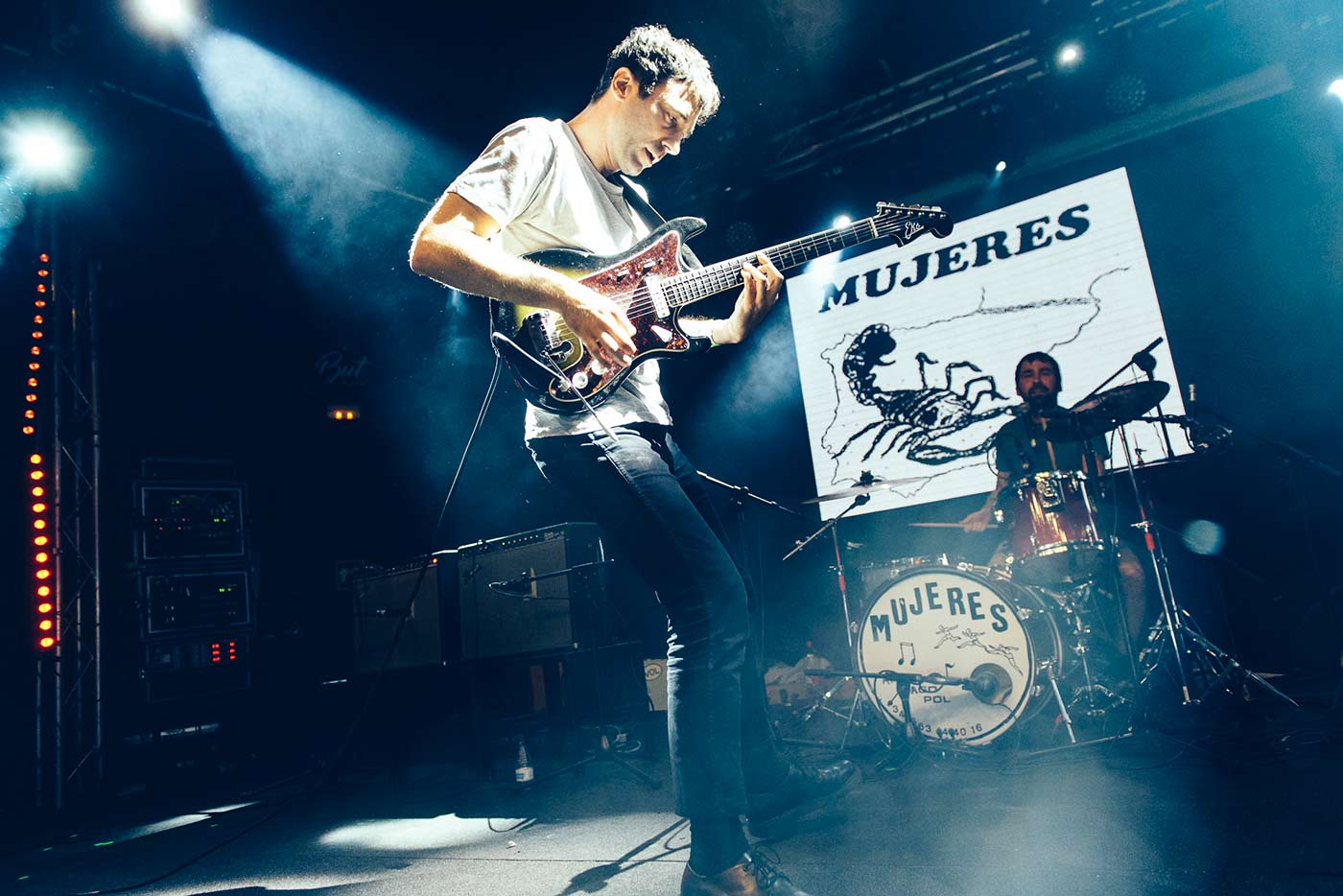 Despejado el paso para Mujeres, la pantalla proyectaba la icónica y macarra portada de su último disco, con un escorpión sobre la silueta de la península ibérica. Yago, Pol y Arnau son los mismos de siempre y al mismo tiempo parecen otros. Para la ya experimentada banda catalana, los cambios en su formación fueron tristes pero también esenciales para resurgir y dar comienzo a una etapa ilusionante, pasándose al castellano y logrando aumentar la conexión que ya tenían con su público. "Un sentimiento importante" (Sonido Muchacho, 2017) suponía un nuevo comienzo que el 22 de marzo nos lleva a "Romance romántico", EP con cuatro canciones que ya pudimos catar este viernes. La banda, que parece liberada de su propio pasado, enfocaba su concierto desde su repertorio más reciente, caso de "Vete con él", con el que arrancaban, "Dije fácil" o "Un sentimiento importante", cuyo clímax fue también el de la noche. Pero también hubo momentos para echar la vista atrás, recuperando 'I Wonder' del magnífico "Marathon" (Canada, 2015), recordando a Erwin Flores y a Los Saicos ('Demolición') y recuperando una de sus canciones más queridas, 'Aquellos ojos', tras la que Pol repartía algunas latas de fabada asturiana entre las primeras filas (ya nos gustaría saber por qué).